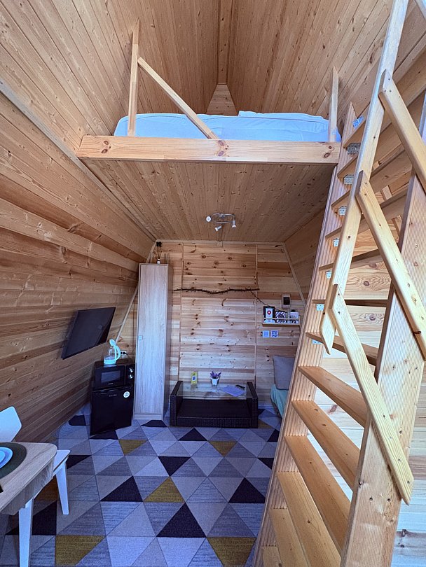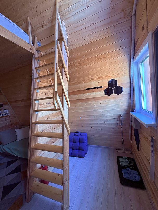 НедостаткиНеудобная лестница к кровати. Для двоих изумительно, чуть больше людей уже не поместиться.