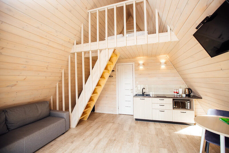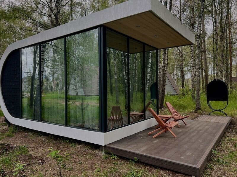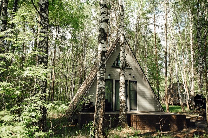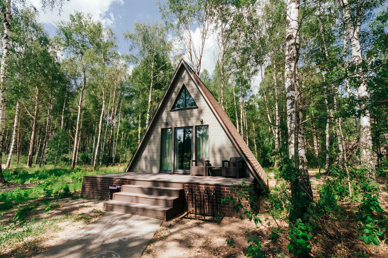 Треугольный лесной дом — комфортное проживание для 4 человек.