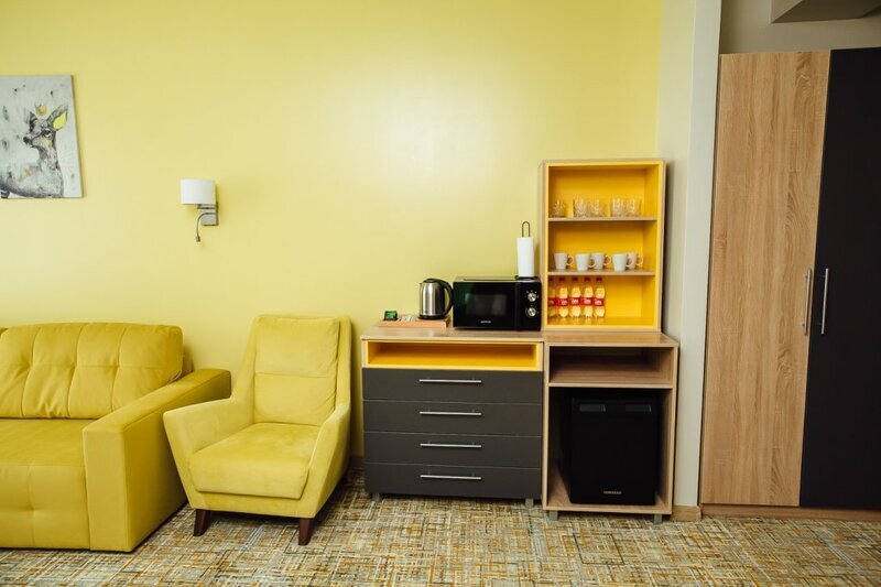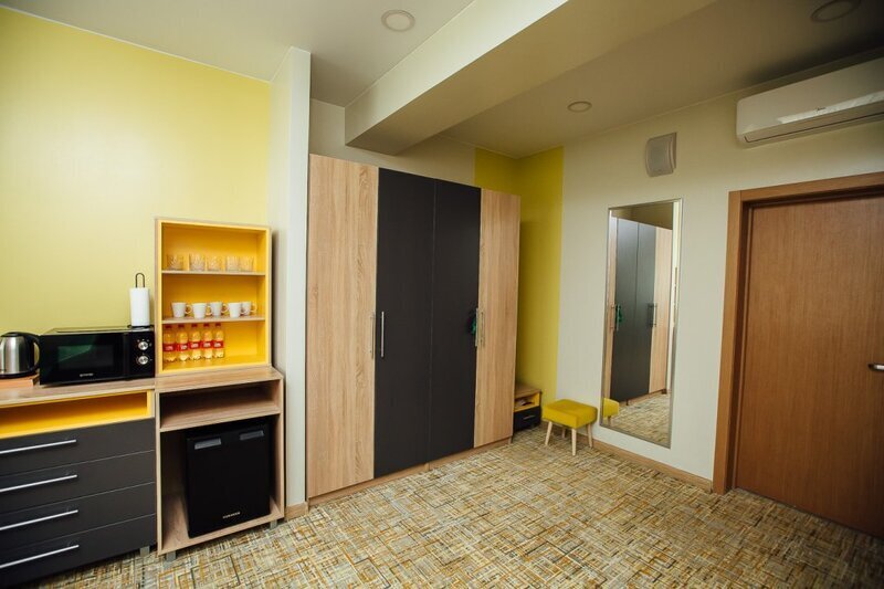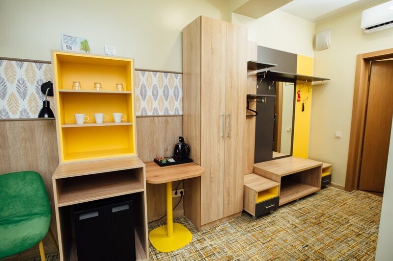 Кресло-кровать, тумба для обуви, вешалки, гостиничная парфюмерия, утюг (по запросу), стаканы.