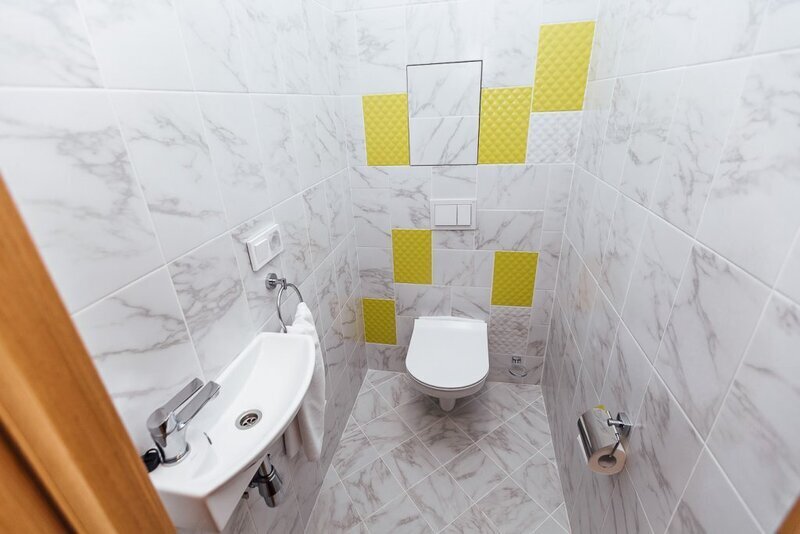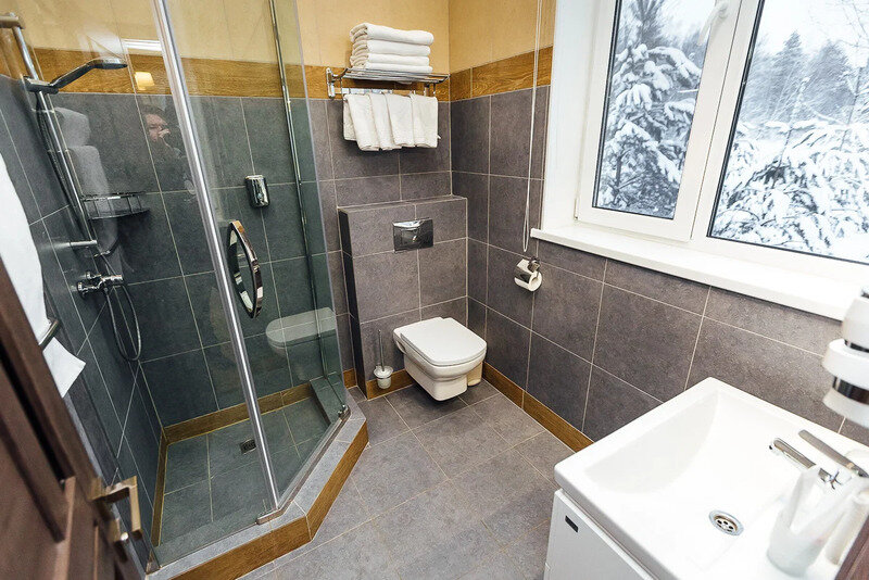 Дом оборудован контурной подсветкой. Полотенцесушитель, гостиничная парфюмерия.