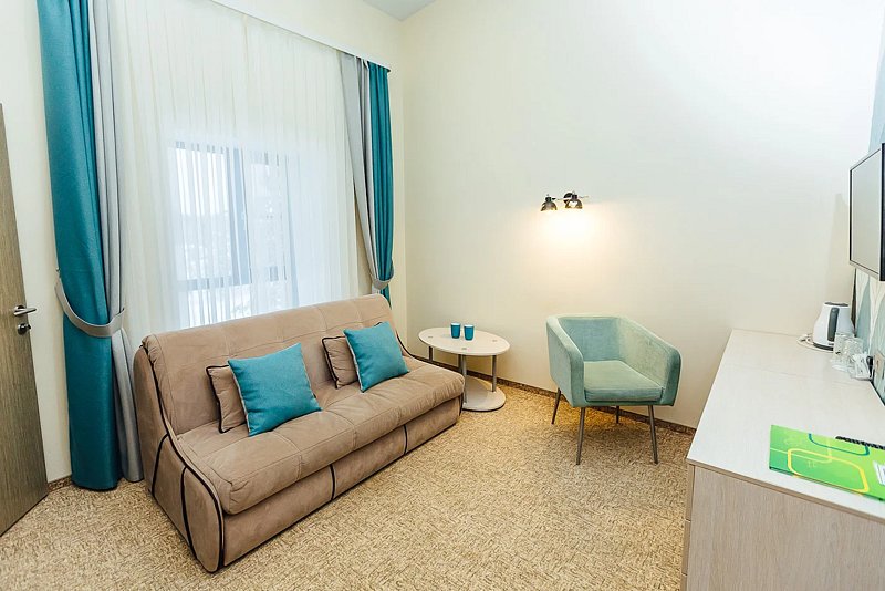 Двухкомнатный номер категории Апартаменты площадью 42 кв.м., располагается на 3 этаже Трёхэтажного корпуса «С».