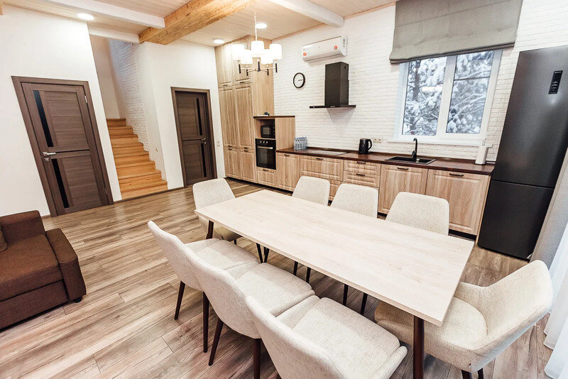Гостевой дом 70 кв.м с 2 спальнями и общей кухней-гостиной, с видом на сосновый лес, около дома есть терраса с мангалом.