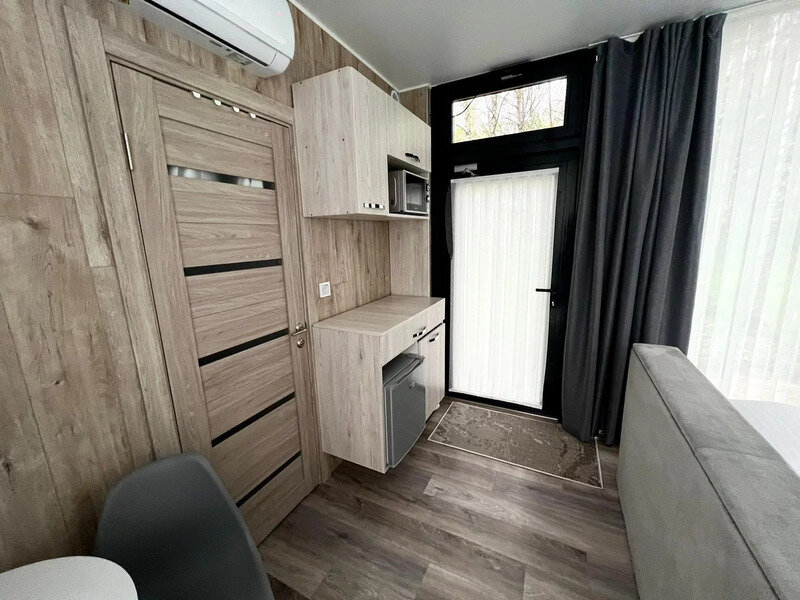 Однокомнатный номер категории «Комфорт» площадью 20 кв.м., располагается на 1 этаже двухэтажных корпусов.