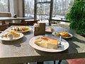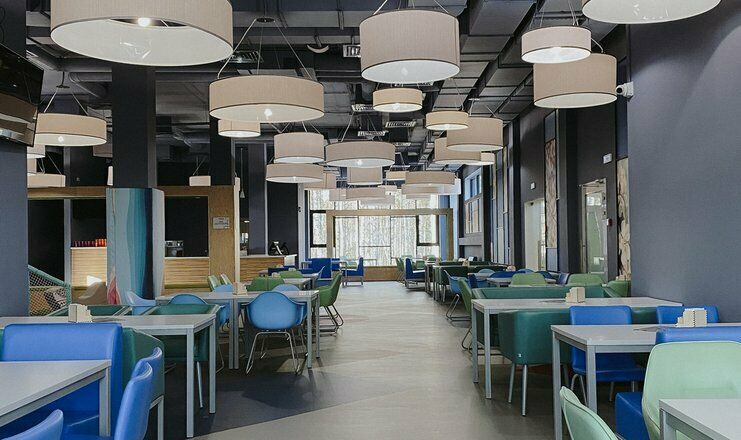 В комплексе организуется питание, помимо этого на территории работают три кафе с вкусными и разнообразными блюдами, имеется даже вегетарианское меню.