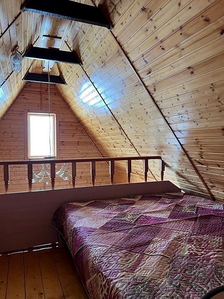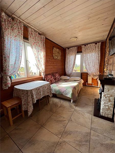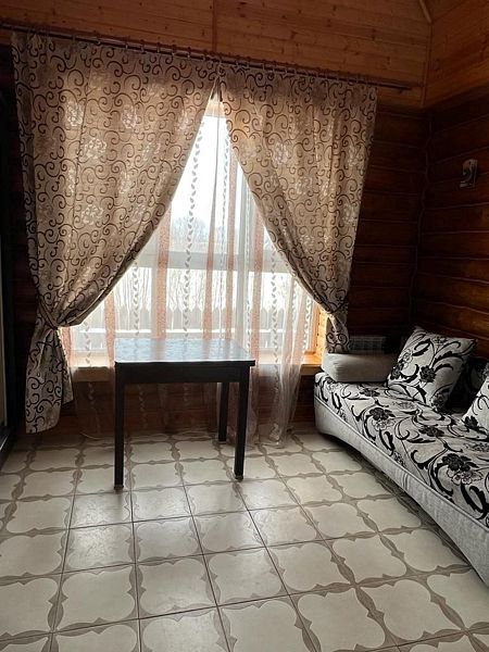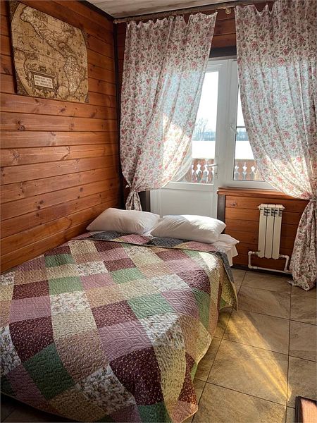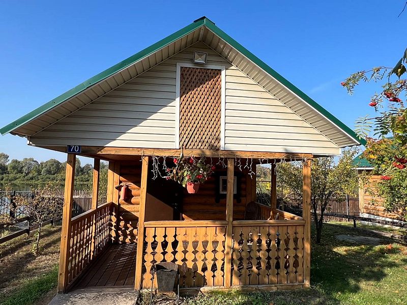 Уютный однокомнатный деревянный дом с верандой на берегу реки. Вид из окна на р. Ока. Индивидуальное отопление, теплые полы, кухонная зона, посуда для приготовления и приема пищи. Индивидуальные гигиенические наборы для гостей.