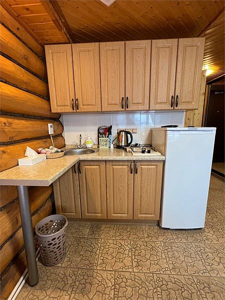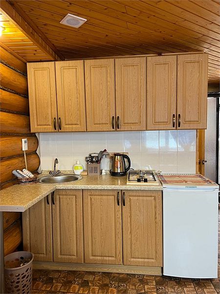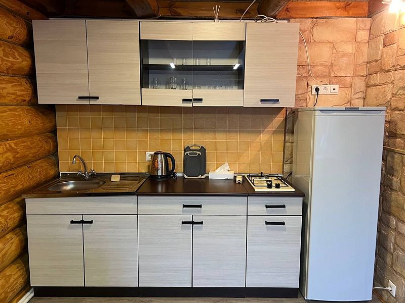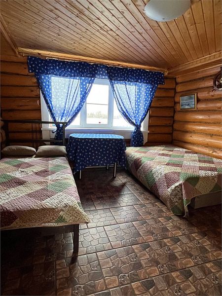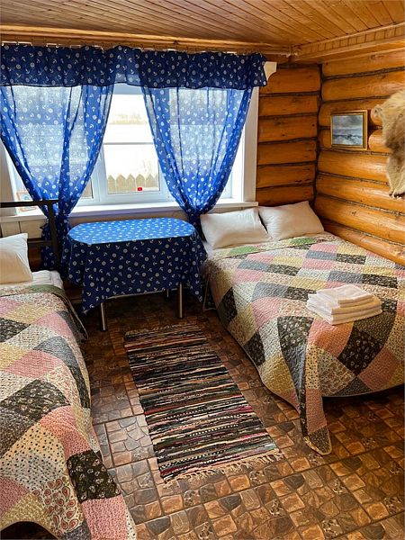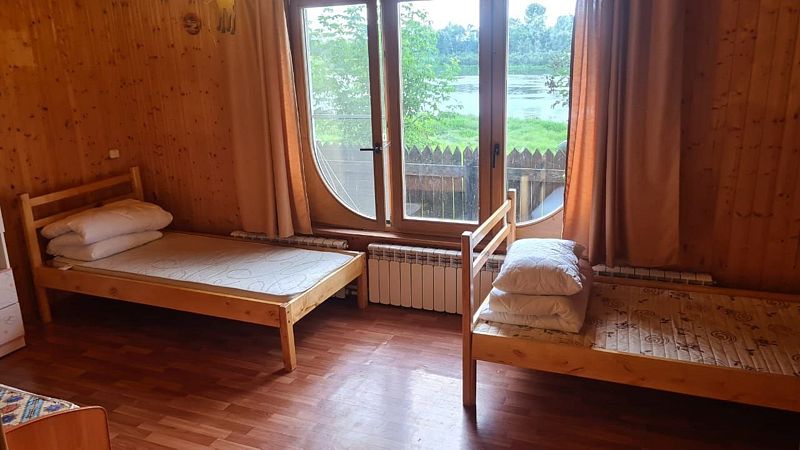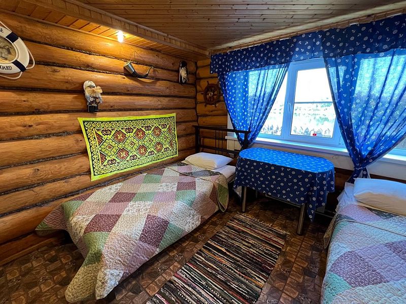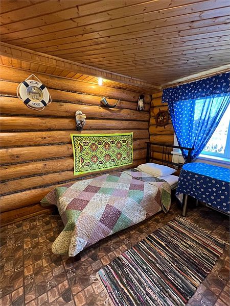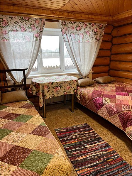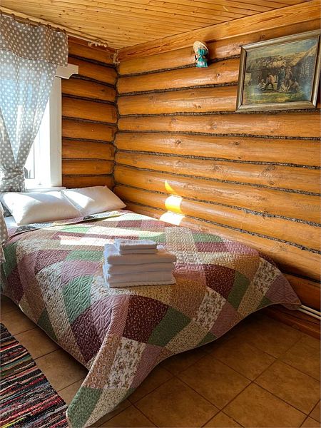 Уютный двухэтажный бревенчатый дом на берегу реки. Собственная терраса, индивидуальное отопление. Кухонная зона, посуда для приготовления и приема пищи. Индивидуальные гигиенические наборы для гостей.