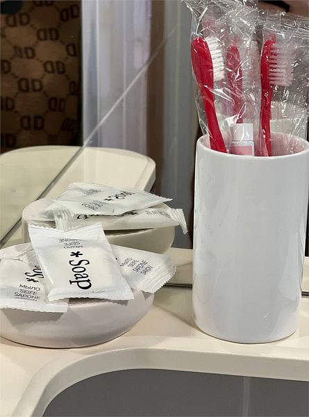 Индивидуальные гигиенические наборы для гостей. По просьбе, исходя из наличия, предоставляется детское кресло для кормления, горшок, детская кроватка-манеж. Комплимент от хозяев.