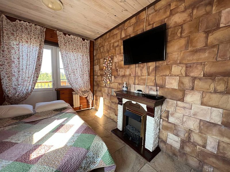 Уютный двухкомнатный деревянный дом с электрическим камином и верандой на берегу реки. Вид из окна на р. Ока и детскую площадку. Индивидуальное отопление, кухонная зона, посуда для приготовления и приема пищи. Индивидуальные гигиенические наборы для гостей.