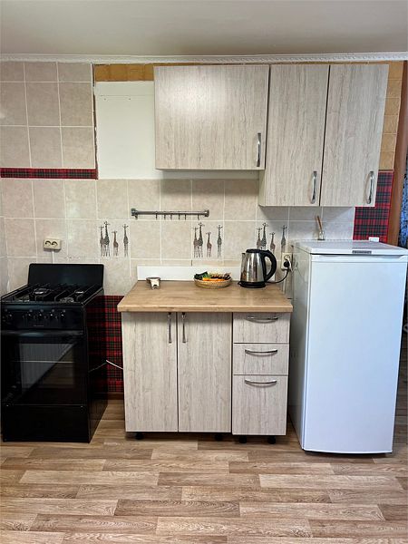 Уютный однокомнатный деревянный дом с верандой на берегу реки. Вид из окна на р. Ока. Индивидуальное отопление, теплые полы, кухонная зона, посуда для приготовления и приема пищи.
