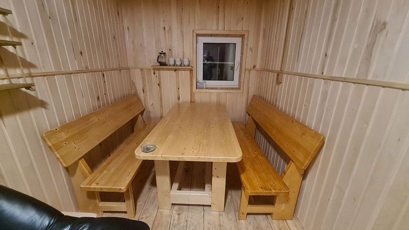 Инфраструктура: зона отдыхаВ банном комплексе вы найдете две русские бани на дровах, рассчитанные на шесть человек. В каждой из них есть отдельная комната для отдыха, что делает пребывание в бане еще более приятным и удобным. Это отличное место для дружеских встреч и сеансов парения.