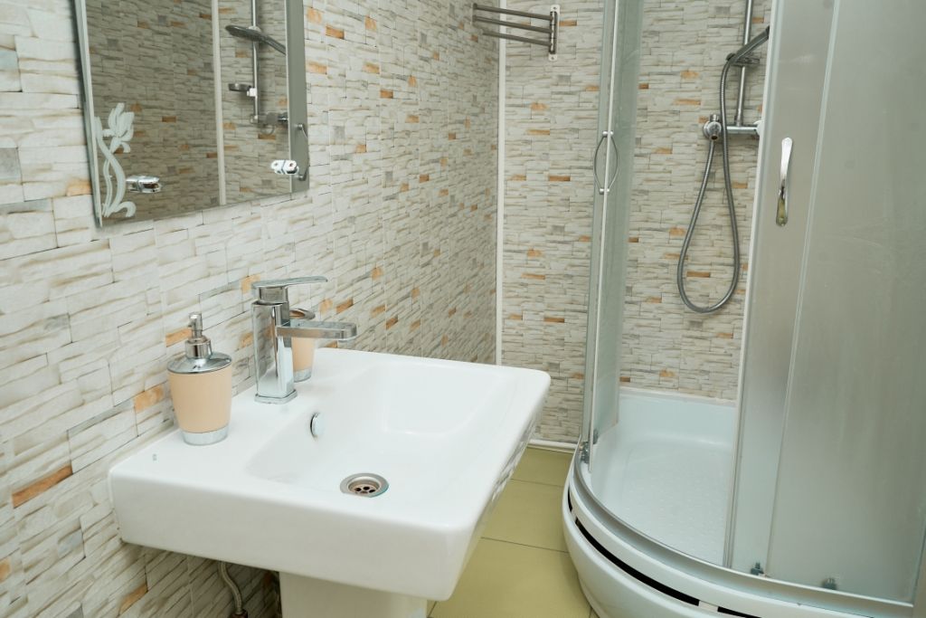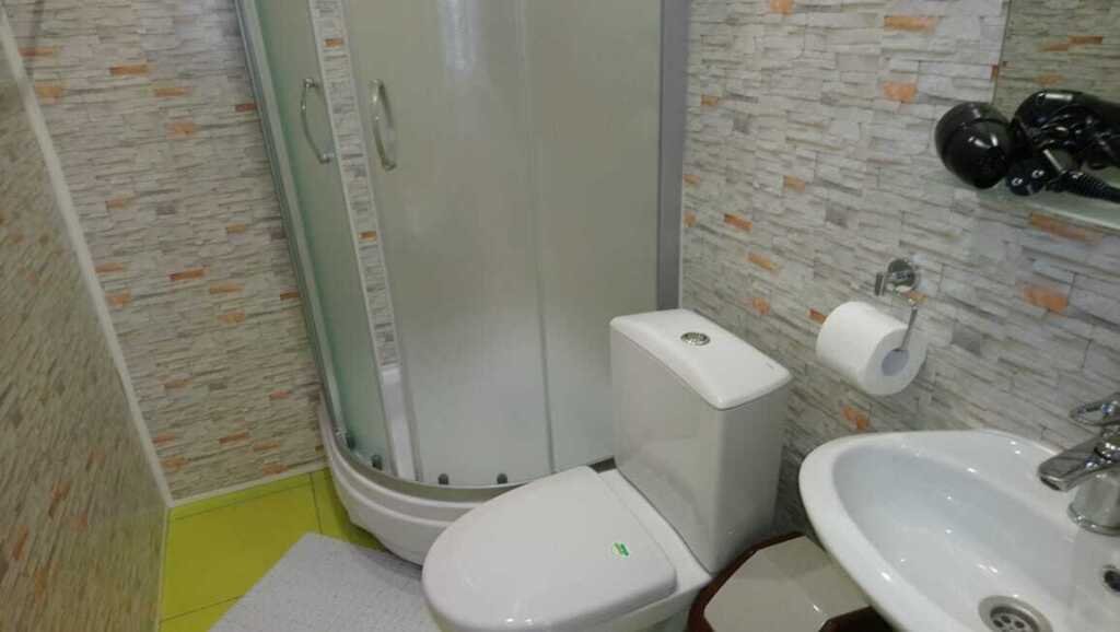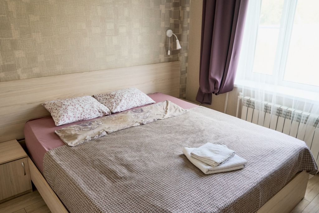 Номер с собственной ванной комнатой. одной двуспальной кроватью.