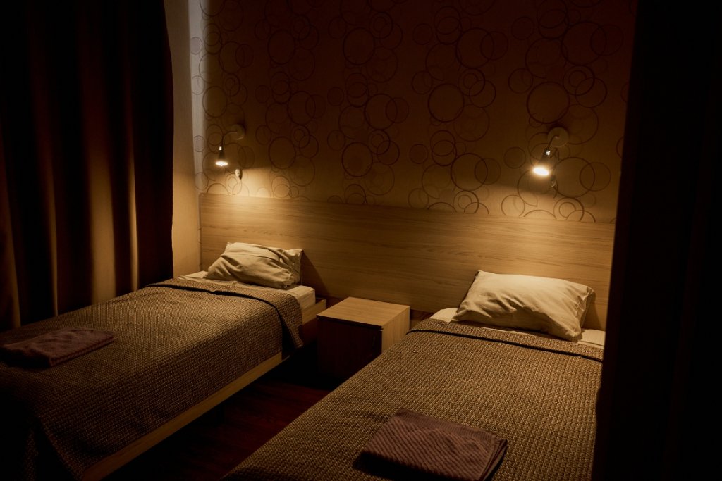 Стандартный номер с двумя односпальными кроватями, с собственной ванной комнатой.