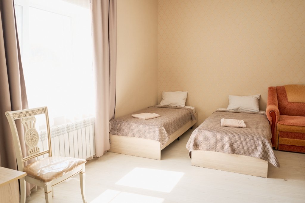 Номер с тремя односпальными кроватями, с собственным санузлом.