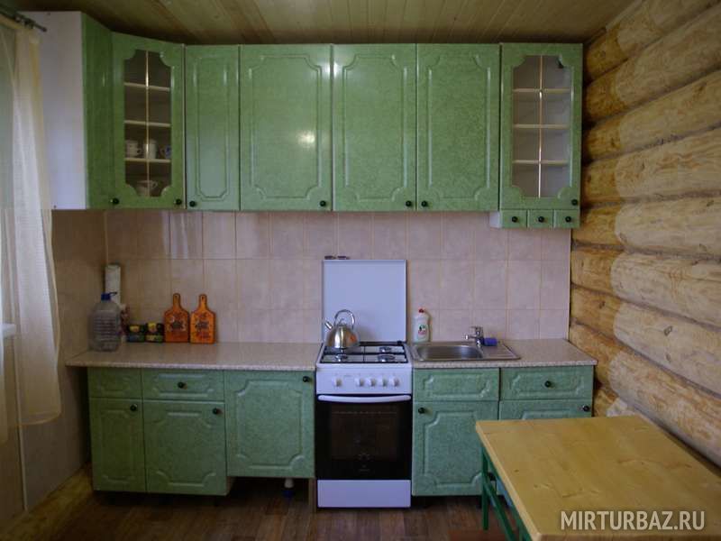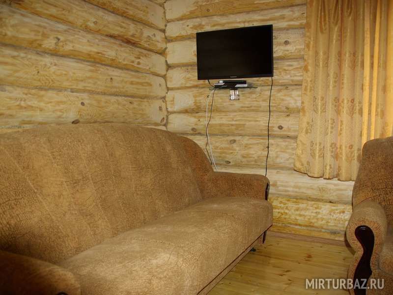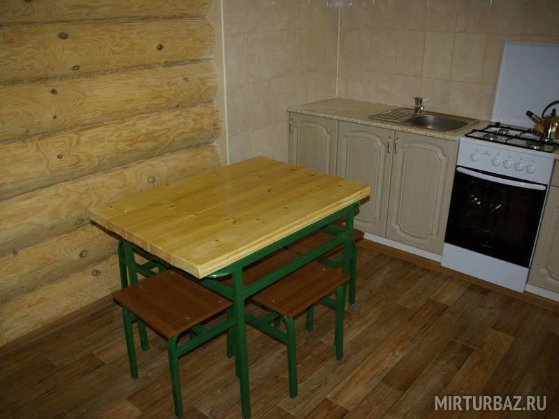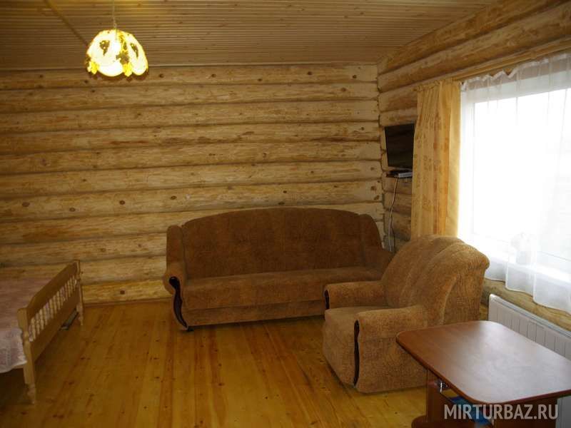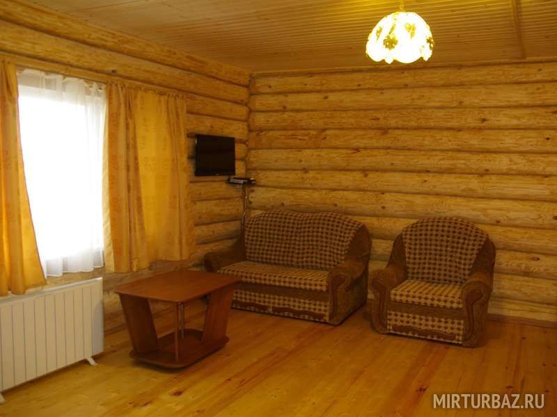 - размещение в просторных коттеджах из сруба, оборудованных всей необходимой бытовой техникой, с собственной кухней и санузлом;