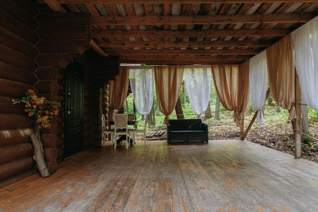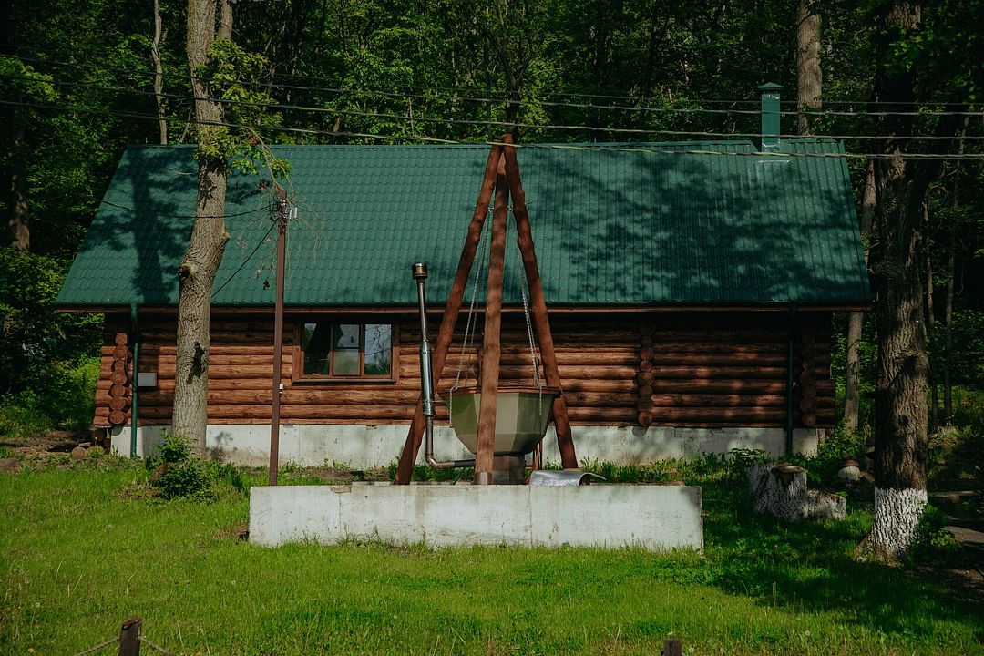 Небольшая уютная беседка на 15 человек подходит для проведения мероприятия и отдыха в живописном лесу.