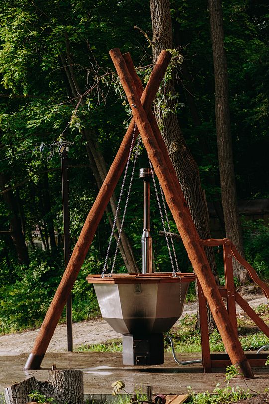 У нас вы можете посетить русскую баню или турецкий хаммам, а также приобрести дополнение в виде банного чана с холодной или горячей водой на выбор.