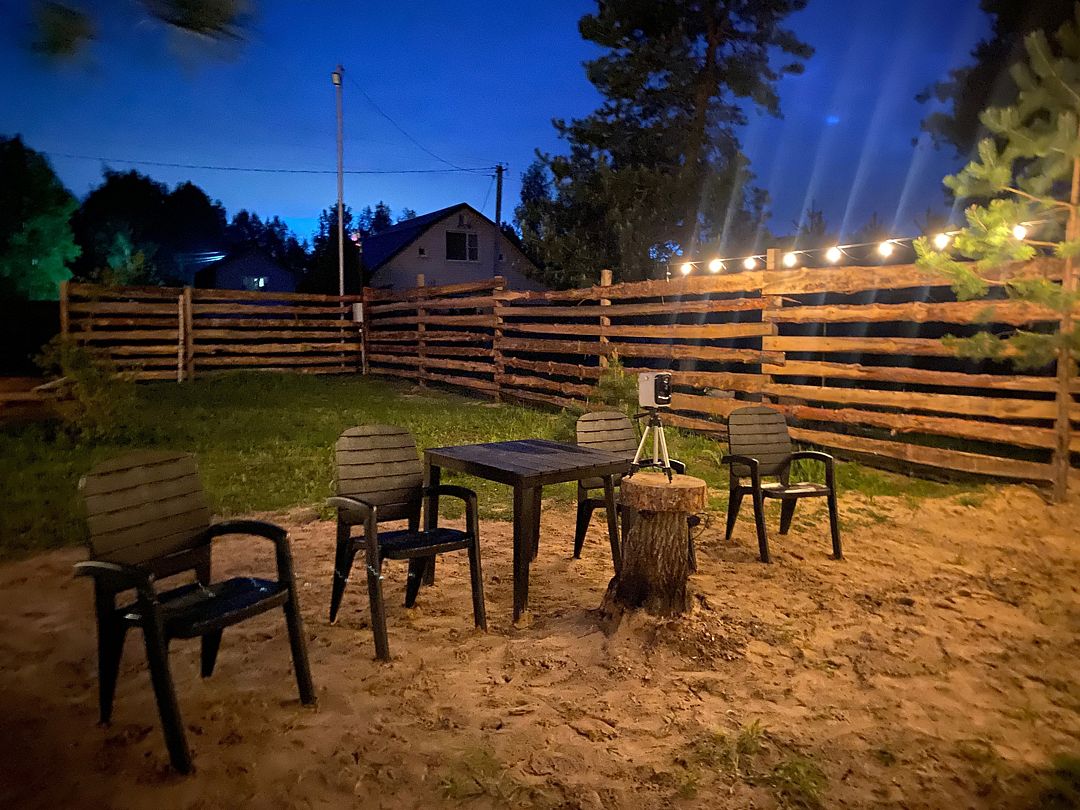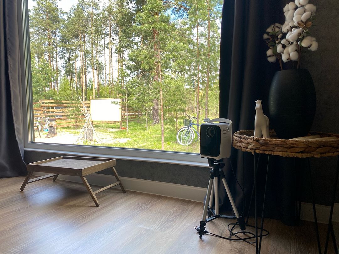 На территории «Мурхауса» вас ждут дополнительные возможности для отдыха: удобный мангал для приготовления шашлыков, уникальный кинотеатр под открытым небом, позволяющий насладиться любимыми фильмами под звездами, и два взрослых велосипеда для приятных прогулок по лесу.