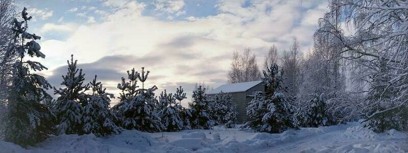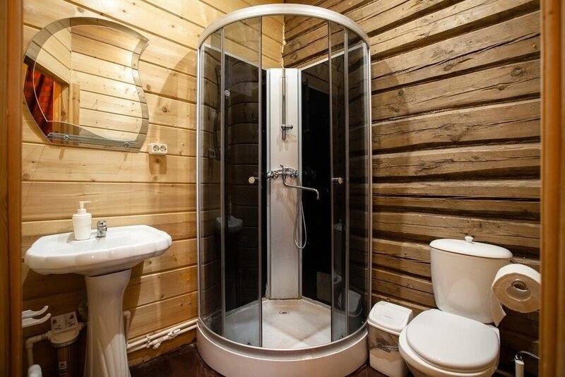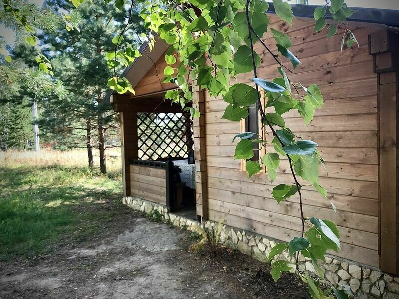 «Изба»— это летний уютный домик на двоих с одной спальней, санузлом, террасой, кухней (47 м²). Кухня оборудована индукционной плитой, холодильником, чайником, микроволновкой, посудой.