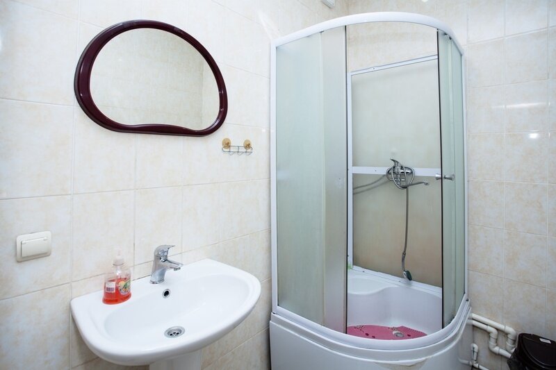 Общая ванная комната на три номера укомплектована бесплатным набором туалетно-косметических принадлежностей.