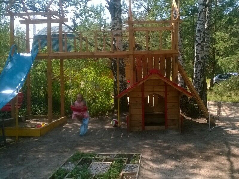 «Лесной домик» имеет две спальни, кухню, санузел, террасу и рассчитан на проживание четырех-пяти человек. В первой спальне находится большая двуспальная кровать (180х200), во второй спальне установлены две односпальные кровати (100х200). Дополнительное место на кухне-холле (100х200).