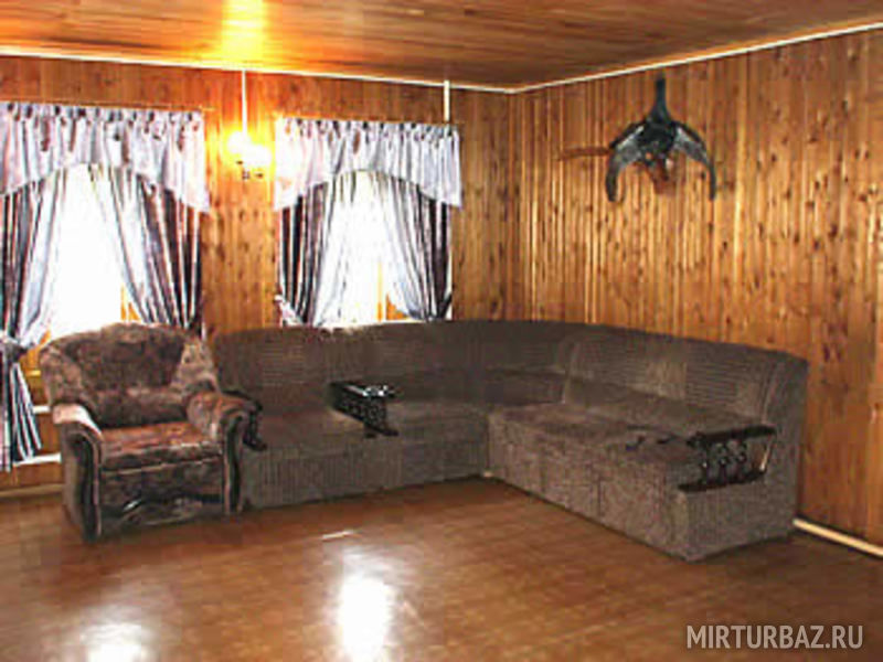 В гостиной имеется караоке, аудиосистема, телевизор (НТВ+). Камин. В коттедже прекрасно оборудованная кухня и столовая с видео, аудио. Мебель в стиле 60-х годов.