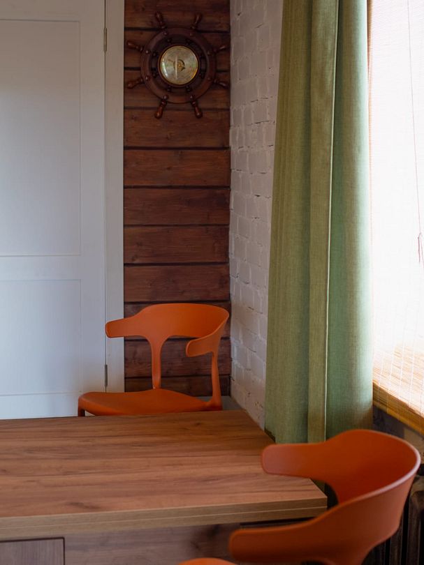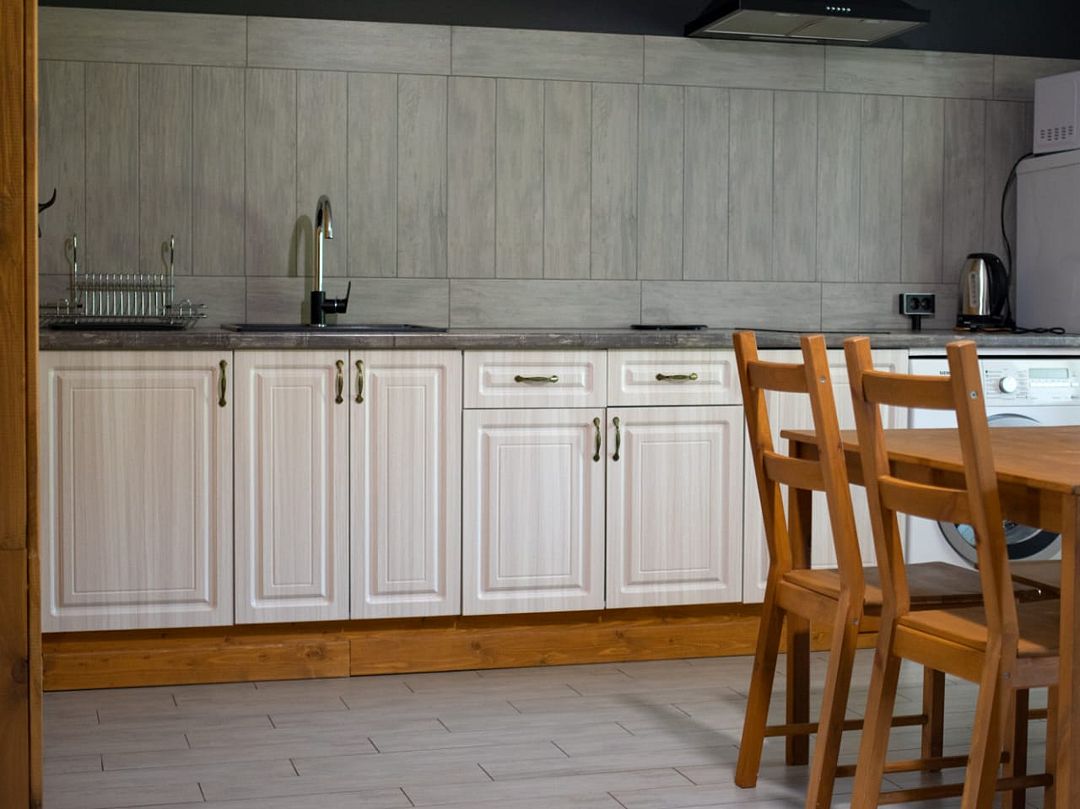 Во всех номерах обустроены обеденные зоны и кухня, оснащенные необходимым и современным оборудованием: варочная панель, холодильник, чайник, посуда. В санузлах установлены стиральные машины.