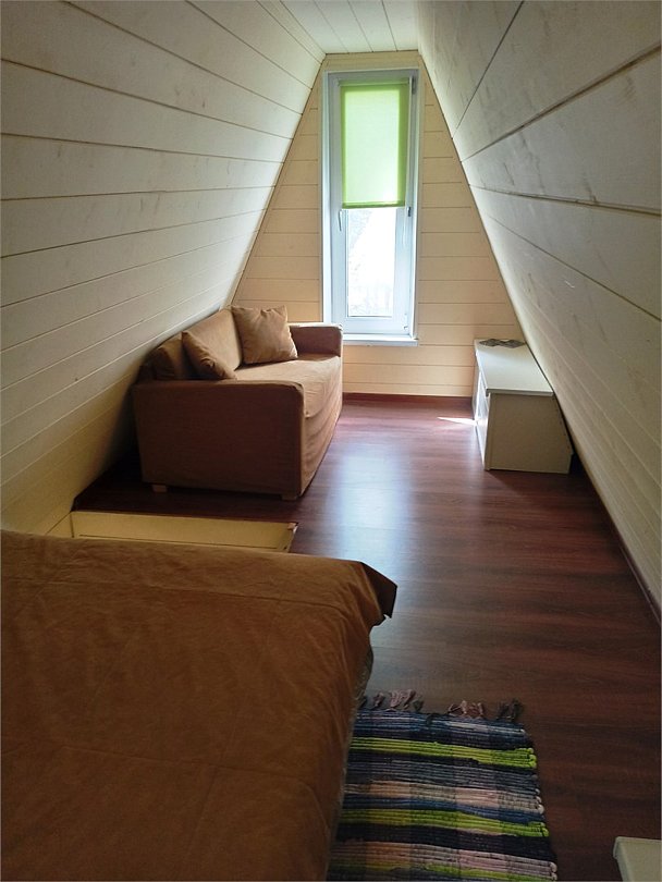 На второй этаж ведет лестница, здесь расположено одно спальное место 120*200, и раскладывающийся вперед диван 120*200.