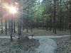 Внимание: (здесь нужно подумать) от храма дорога к Усадьбе уходит правее вниз к оврагу. Если навигатор показывает съезд в сторону реки (влево), туда ехать не нужно. Поворачивать надо к оврагу. В овраге держаться левее, подняться вверх по склону и дальше прямо 800 метров через молодой сосновый лес до въездной группы Усадьбы Пчелинцево. В сторону Усадьбы ведут электрические столбы.
