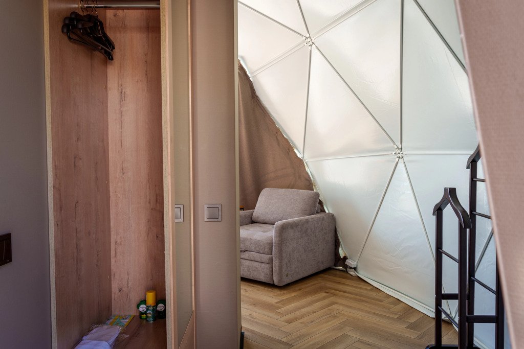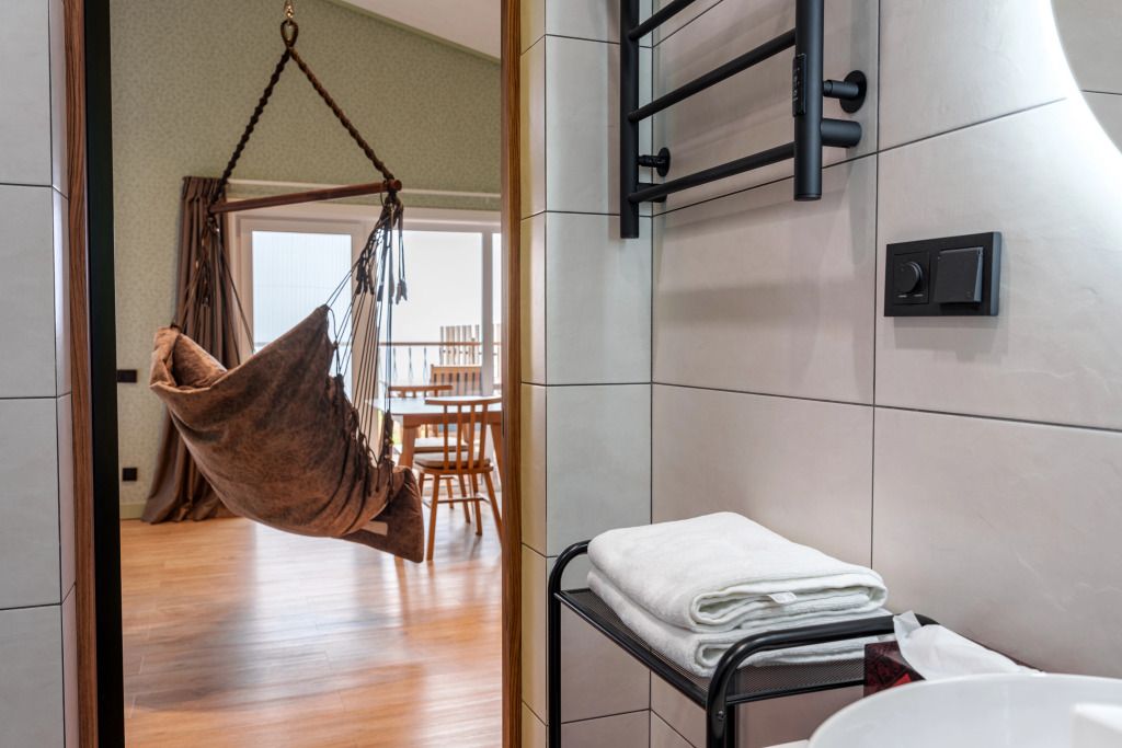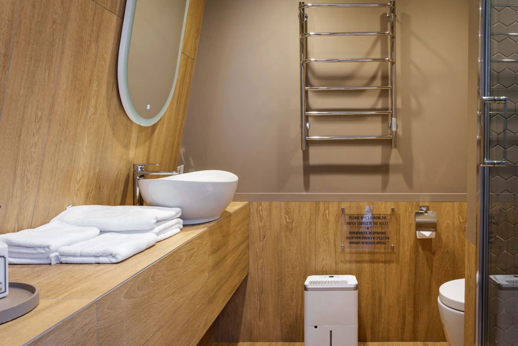 В номере вы найдёте телевизор. Оснащение зависит от выбранной категории номера.