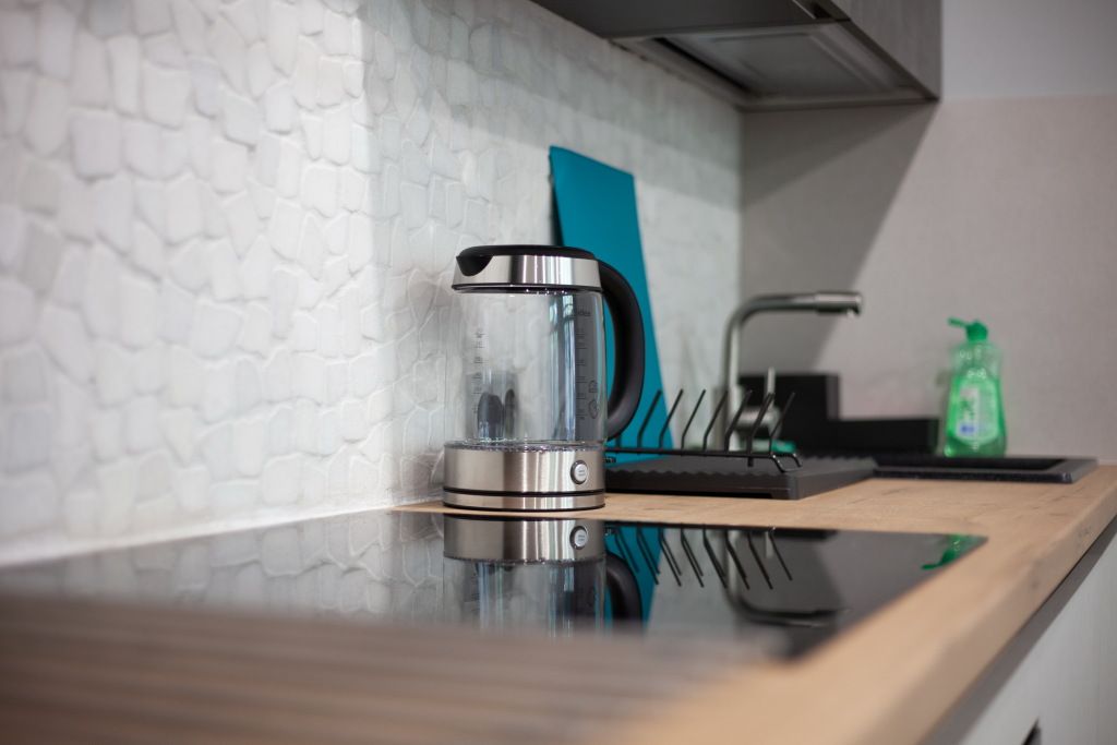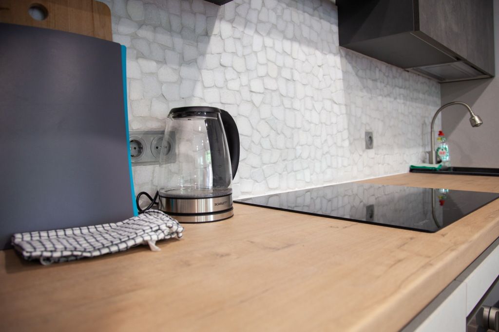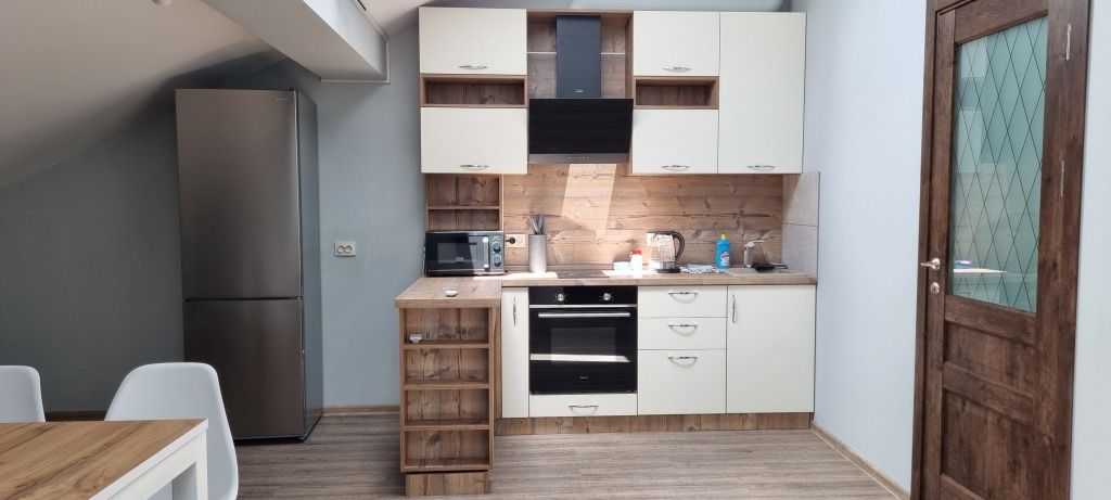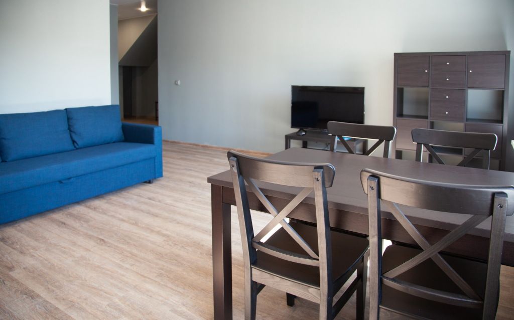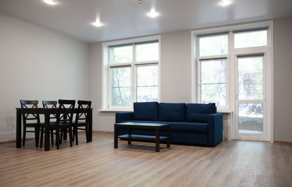 Современное трехэтажное задние с мансардой предлагает к услугам гостей 2-х и 4-х местные апартаменты с кухней и индивидуальным санузлом. Номера, оформленные в светлых оттенках, оборудованы всей необходимой мебелью и техникой: есть сплит-система, плита, микроволновка, электрочайник, холодильник и стиральная машина. В санузле – ванна или душ, а для отдыхающих подготовлены туалетные принадлежности, халаты и тапочки.