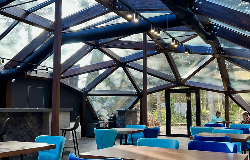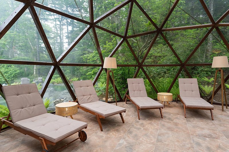 В лаунж-зоне под куполом вы сможете отдохнуть в шезлонгах и попробовать чаи из фито-бара.