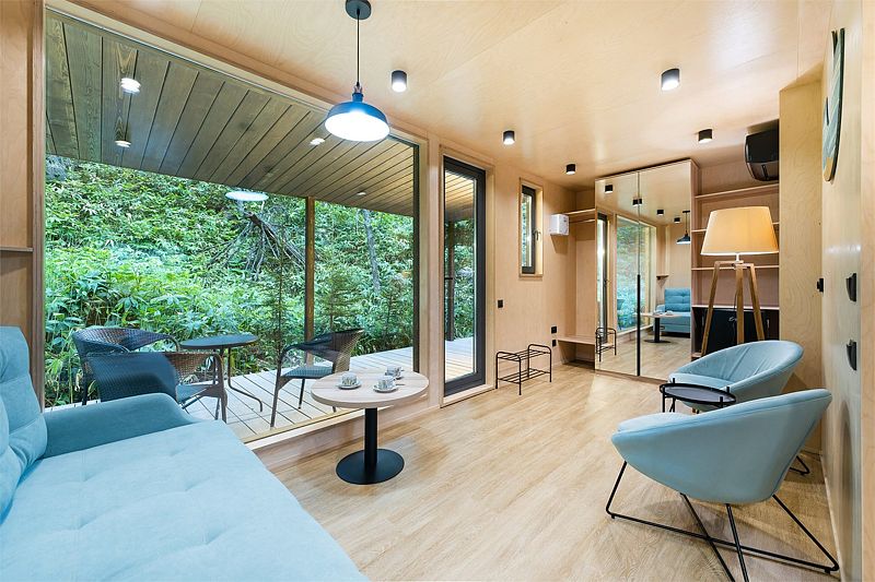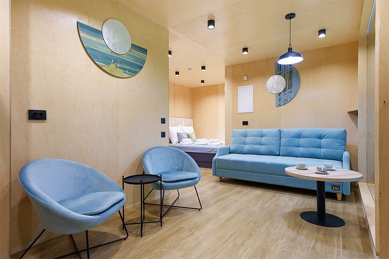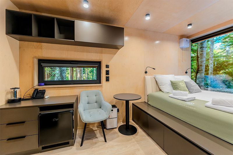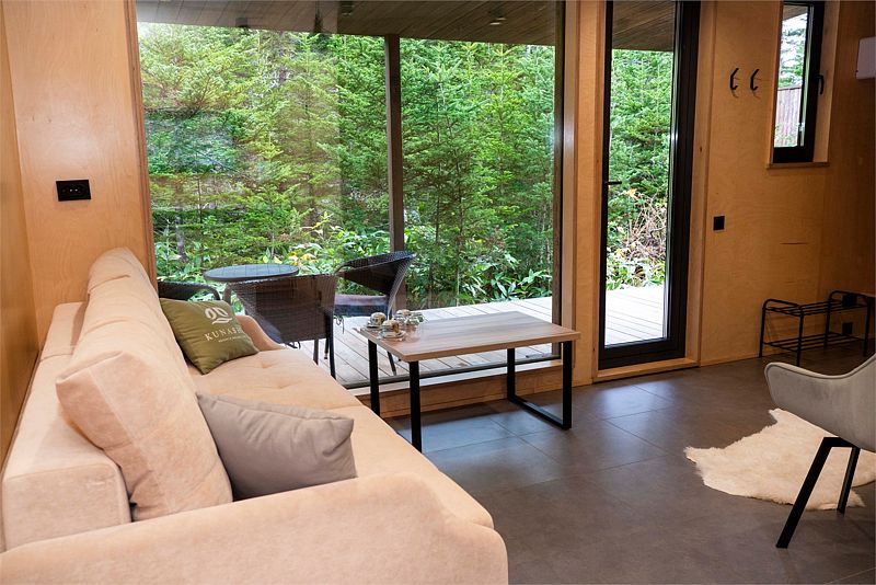 Каждый из 22 уютных домиков, выполненных из экологически чистых материалов, гармонично вписывается в окружающий ландшафт и открывает потрясающие виды на заповедный лес — большие панорамные окна позволяют наслаждаться красотой природы в любое время суток. Для вашего удобства предусмотрены системы «умного дома», которые регулируют температуру, влажность и освещение.