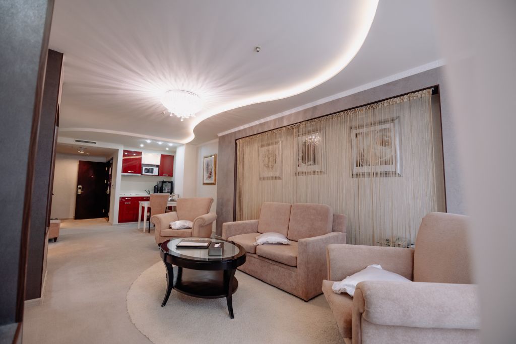 Площадью 110 кв.м расположенный на десятом этаже отеля, откуда открывается прекрасный вид на панораму города. В летнее время работает открытая терраса.