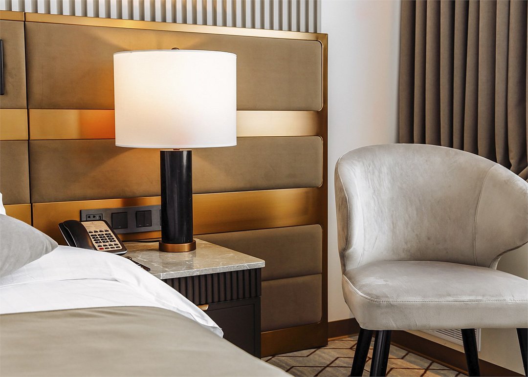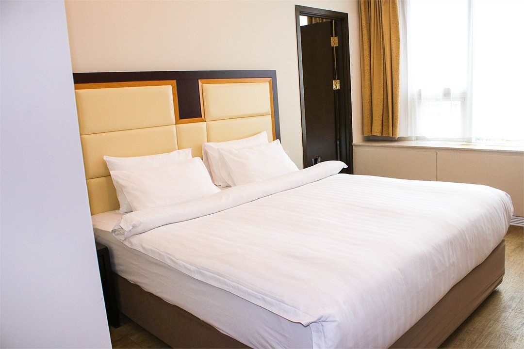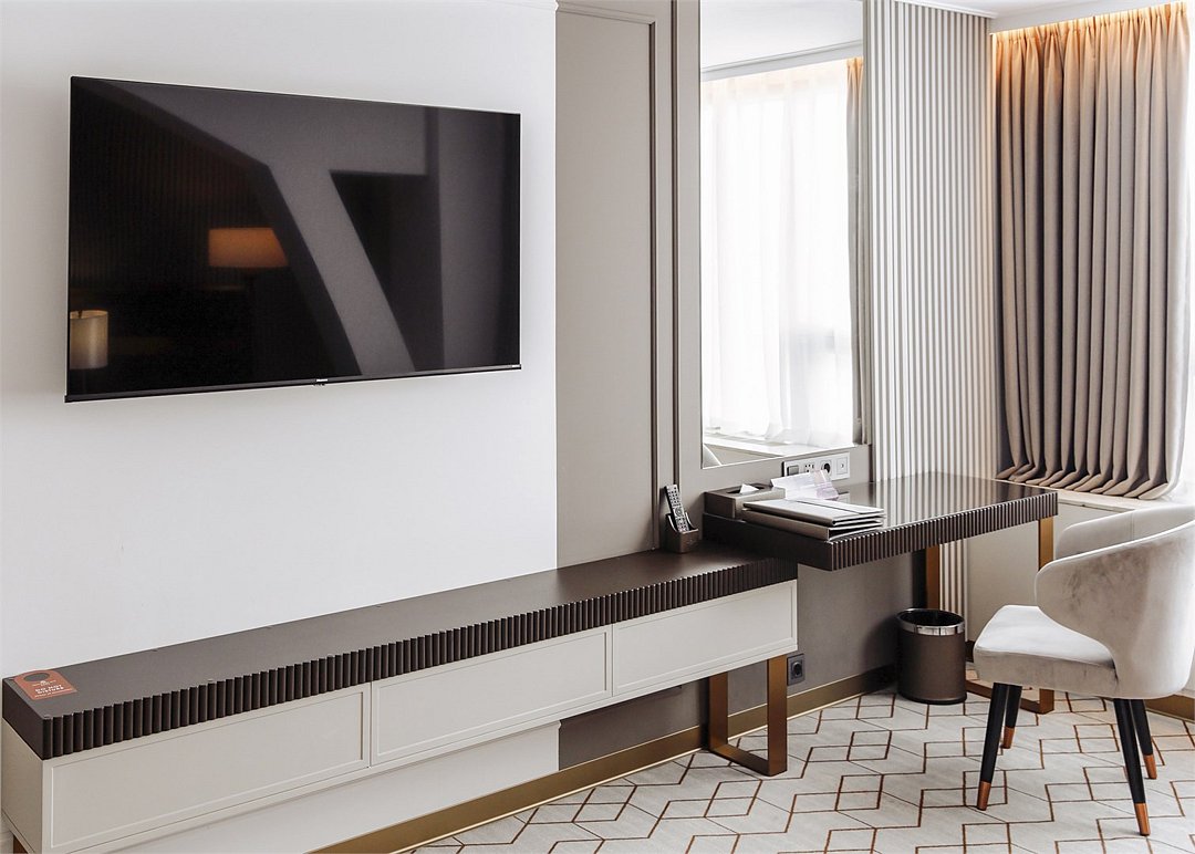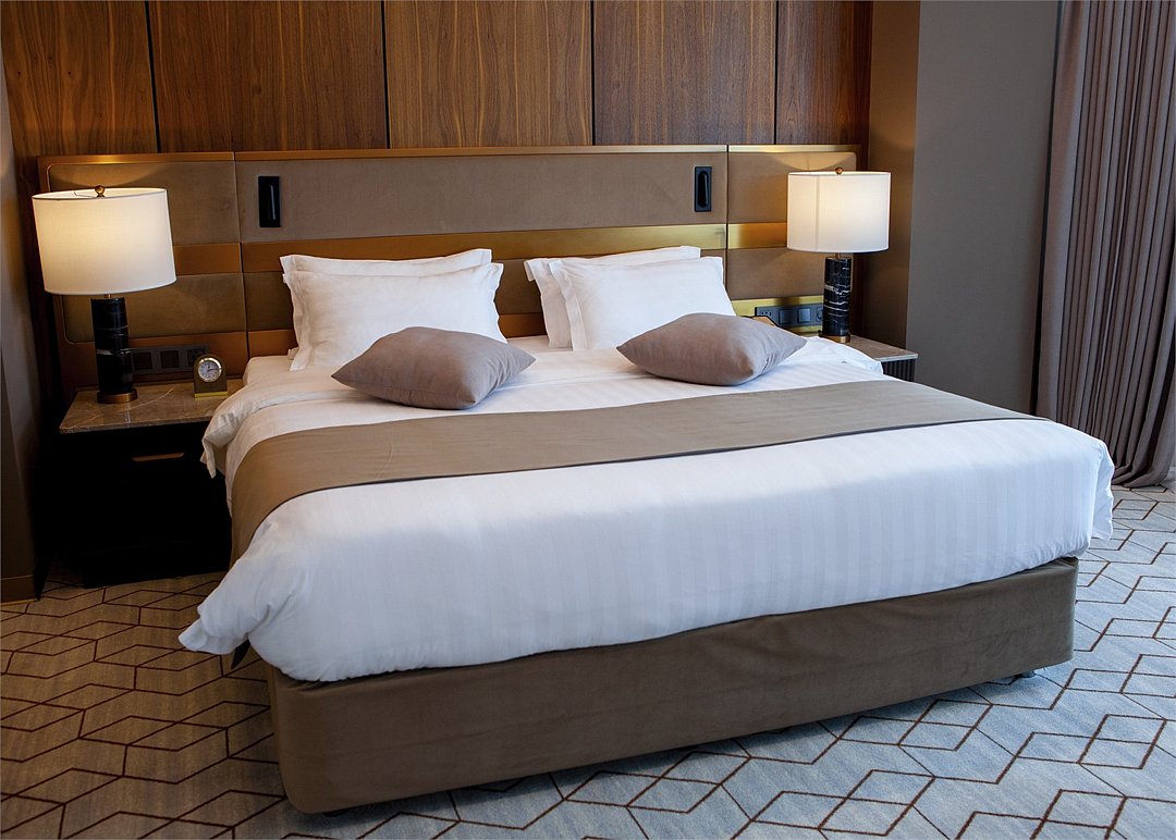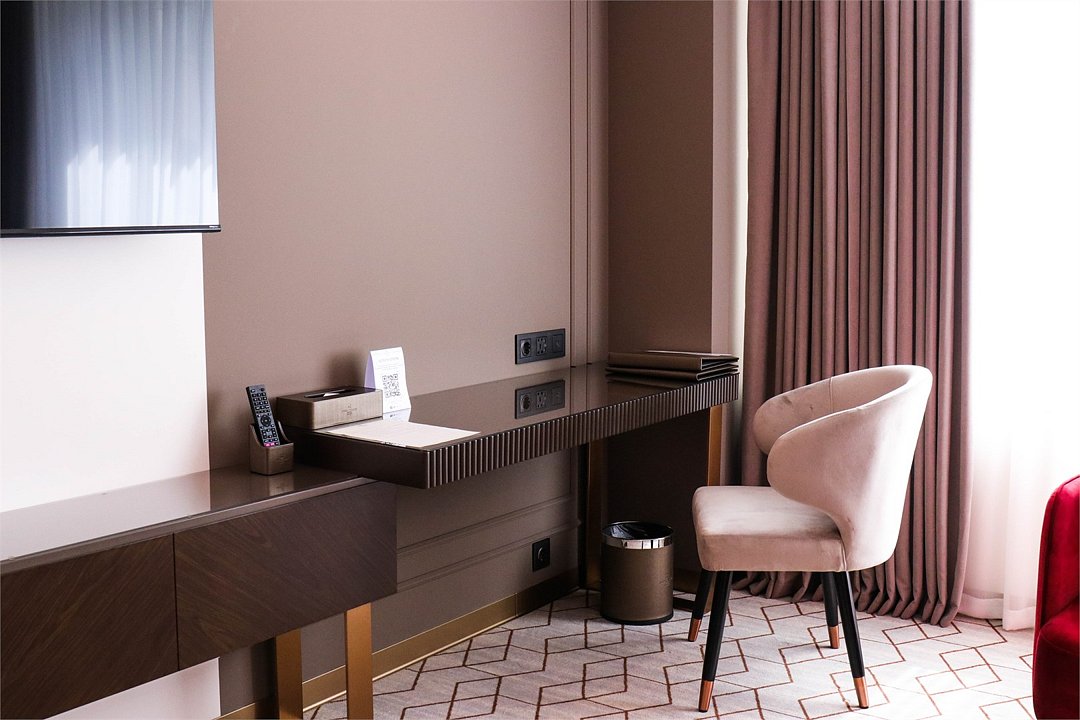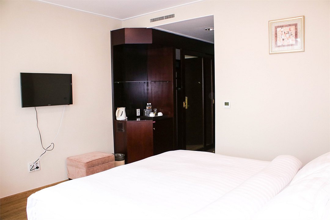 Классический номер с уютным интерьером для двухместного размещения. Стандартный номер располагает удобной комнатой с большой двуспальной кроватью, ванной комнатой с совмещенным санузлом. В номере: рабочий стол, сейф, мини-бар, кабельное телевидение, телефон, система климат-контроля. Гость не почувствует себя одиноким, благодаря высокому сервису и вниманию сотрудников отеля.Услуги и удобства