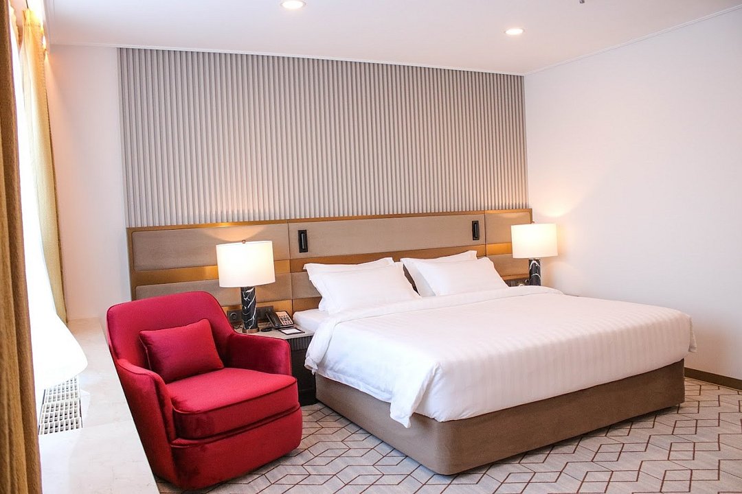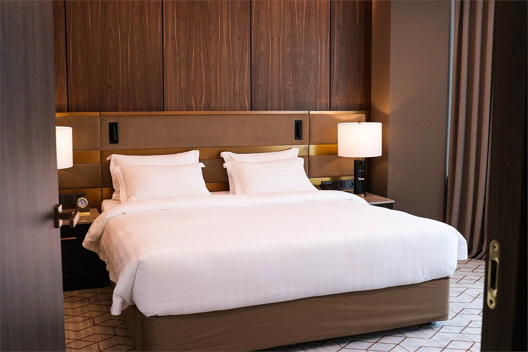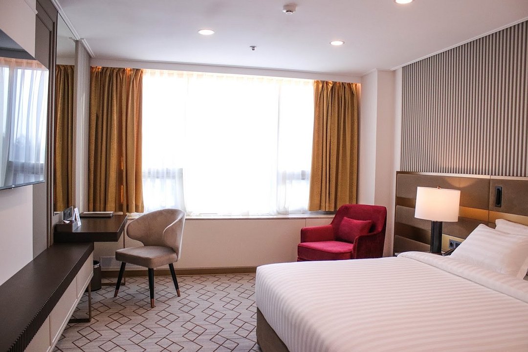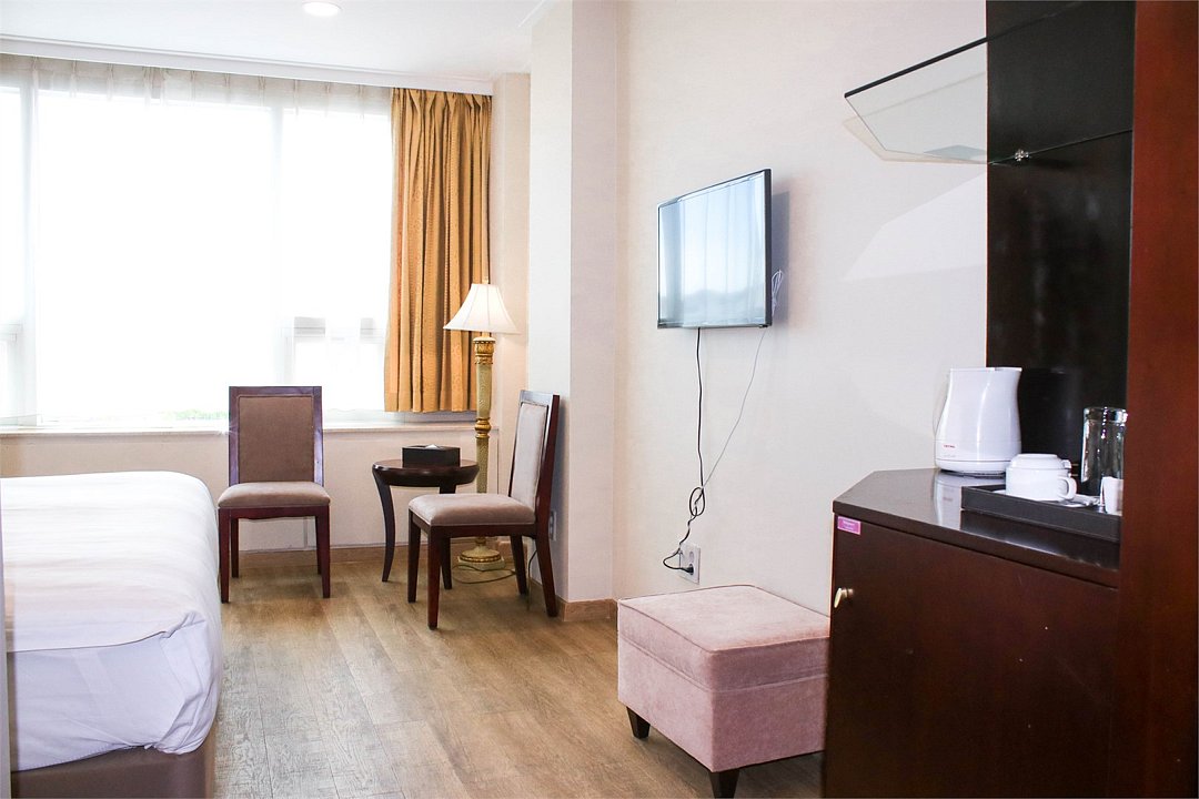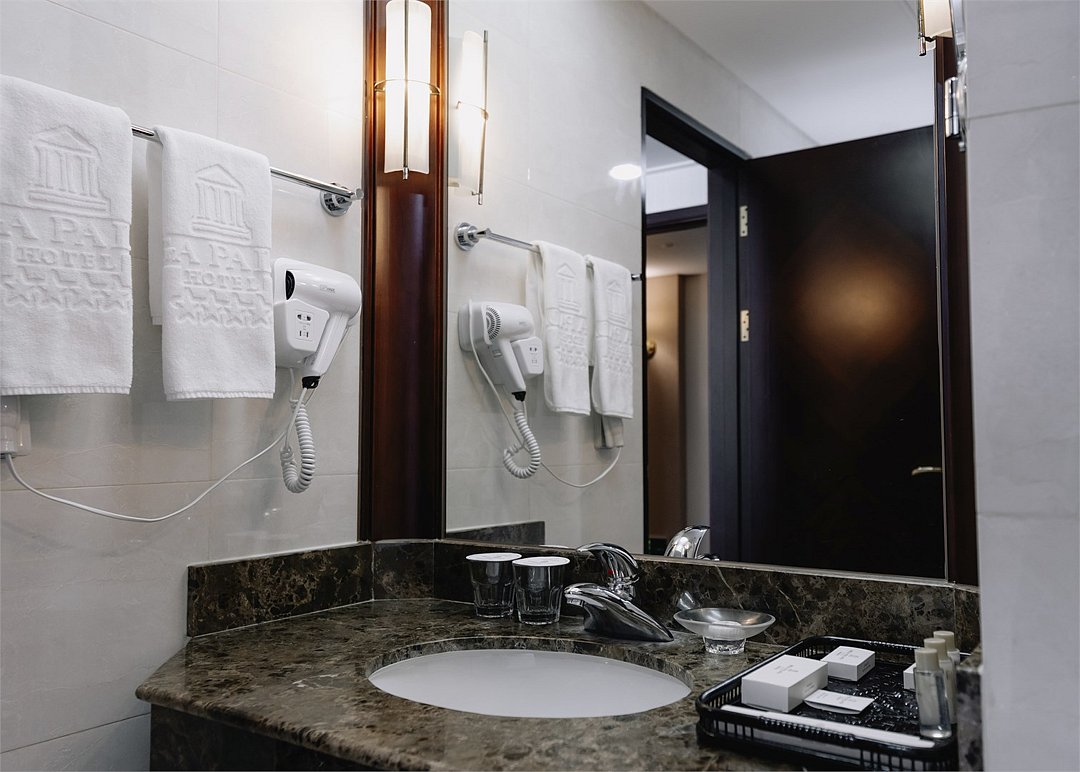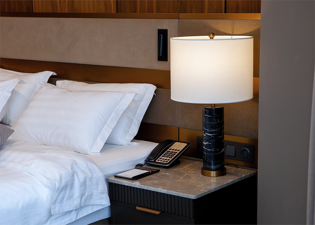 Классический номер с уютным интерьером для двухместного размещения. Стандартный номер располагает удобной комнатой с большой двуспальной кроватью, ванной комнатой с совмещенным санузлом. В номере: рабочий стол, сейф, мини-бар, кабельное телевидение, телефон, система климат-контроля. Гость не почувствует себя одиноким, благодаря высокому сервису и вниманию сотрудников отеля.Услуги и удобства