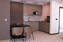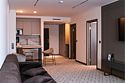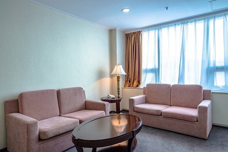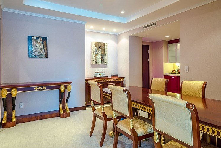 Номер может удовлетворить даже короля: просторная гостиная, кухня, две спальни и большая ванная комната делают этот номер удобным для проживания VIP-гостей с друзьями или целой семьей. Два рабочих места и три кровати позволяют сделать из апартаментов настоящий дом для нескольких семей, где можно и работать, и отдыхать. А в конце дня собираться всем вместе перед телевизором в гостиной на большом диване и мягких креслах. В номере: 3 телевизора, 4 телефона, Интернет, спутниковое телевидение, система климат-контроля, комплект офисных принадлежностей, душевая, большая ванна. Для проживающих в гостинице следующие виды услуг предоставляются бесплатно: посещение сауны, посещение фитнес клуба, бесплатный Wi-Fi на первом этаже. В стоимость включен завтрак.Услуги и удобства