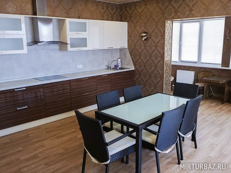 Двухэтажный дом S= 220 м.кв с 5-ю номерами с размещением 14 человек. Дом полностью оборудован всеми необходимыми удобствами.