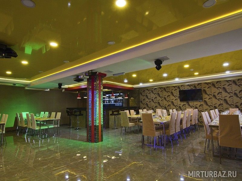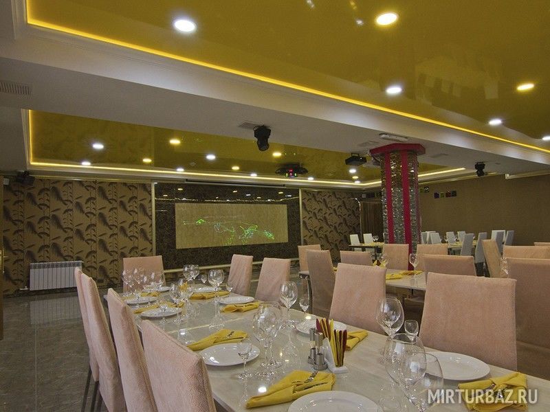 Площадь зала 120 м². Вместимость до 100 человек, есть два отельных туалета, кондиционер, барная стойка, холодильник, а так же есть проектор и шторка для просмотра проектора.
