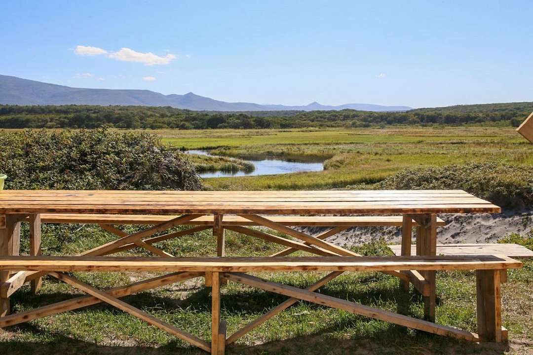 На первом этаже гостиничного корпуса организована обеденная зона, оснащенная бытовой техникой. Гости могут выпить чай, кофе или приготовить себе еду. На территории обустроена зона отдыха с гамаком, а также площадка со столиком и скамейками. Желающие могут арендовать принадлежности для рыбалки или отправиться на экскурсию по природным локациям.