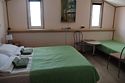 12 кв.м., 2 односпальные кровать, стол, с/у с душем. Общая кухня с холодильником, микроволновой печью.