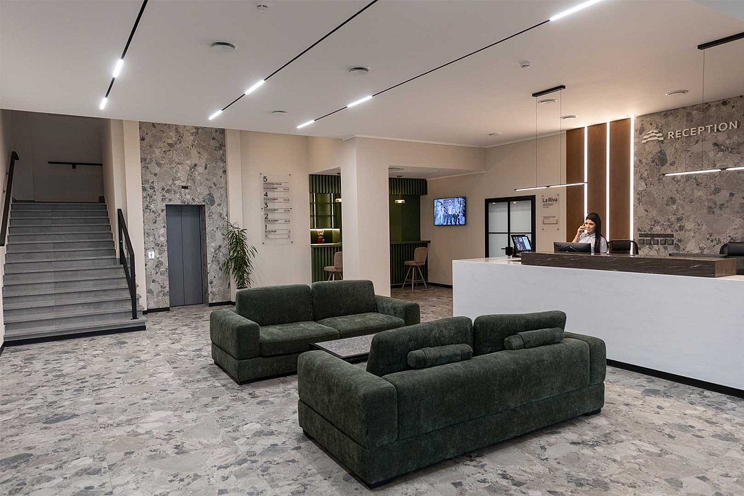 К услугам гостей ресторан европейской кухни «La Riva», современный СПА-комплекс с бассейном, сауной, хаммамом и тренажерным залом. Также есть конференц-зал для проведение семинаров и встреч.