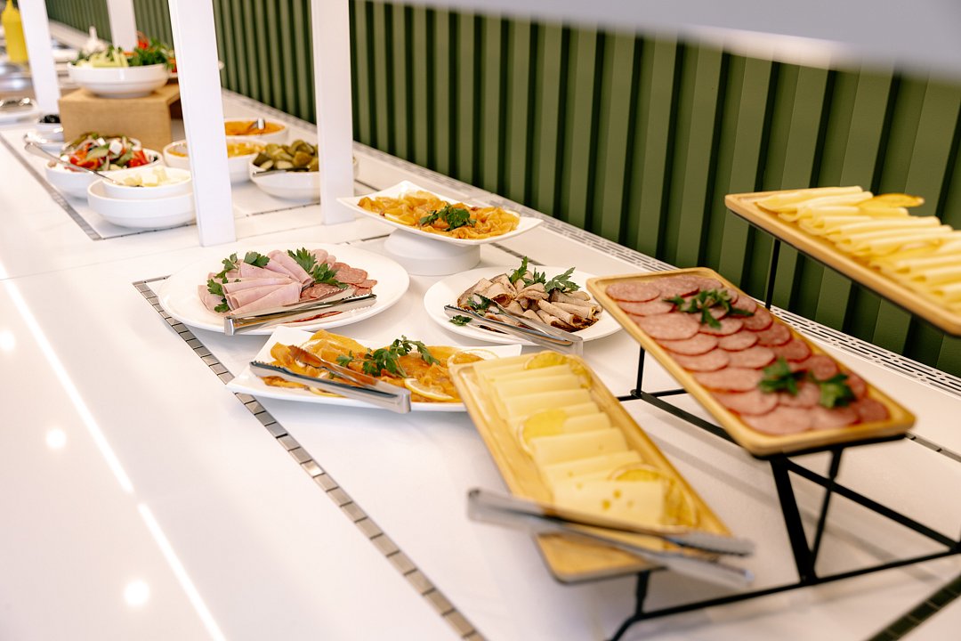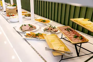 Возможность заказа еды и напитков в конференц-зал во время мероприятий: фуршеты, презентации, лекции и деловые встречи.