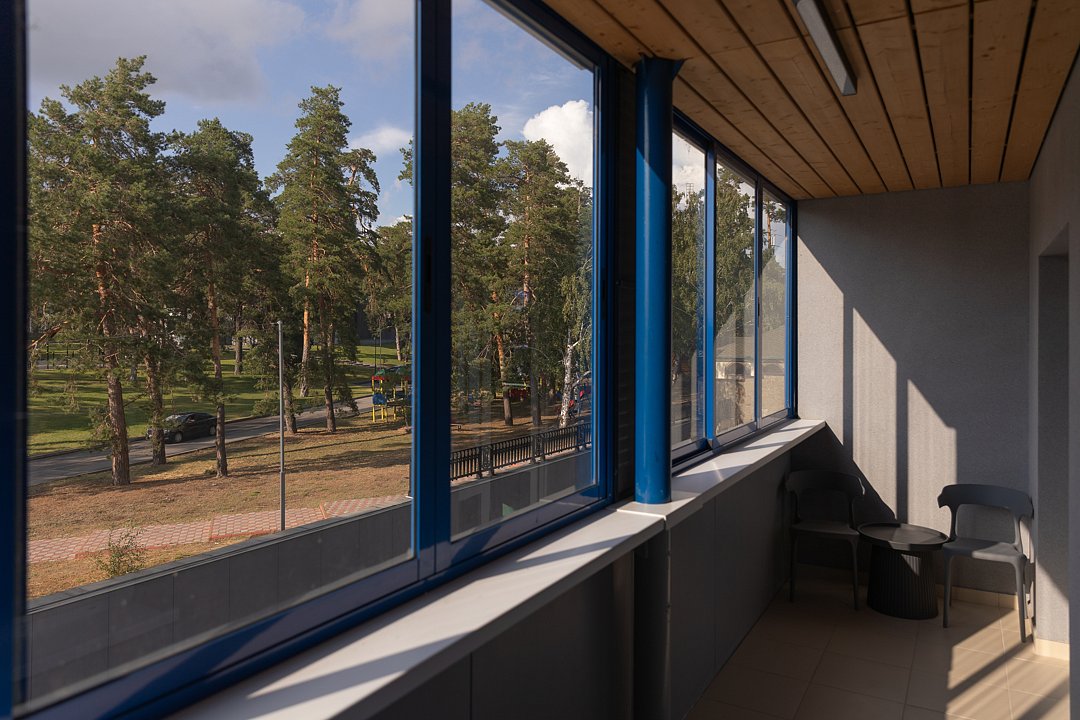 Панорамный вид на лес наполняет пространство светом и воздухом, превращая отдых в незабываемое впечатление.