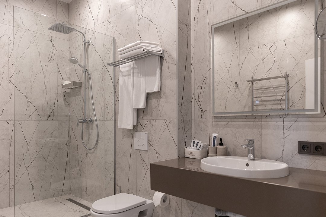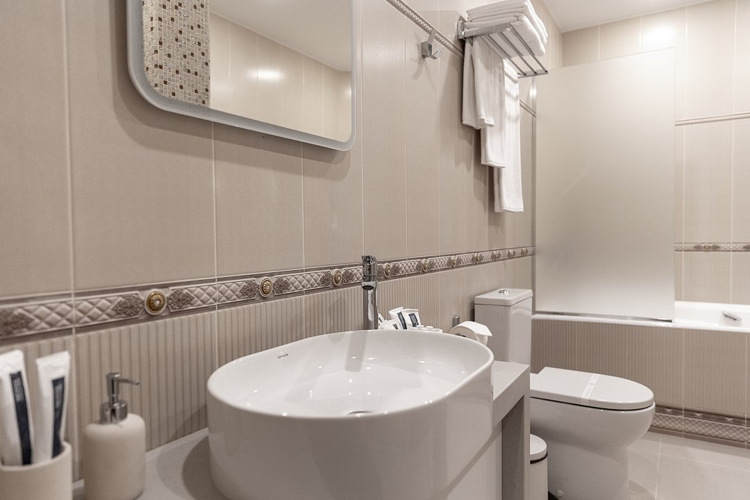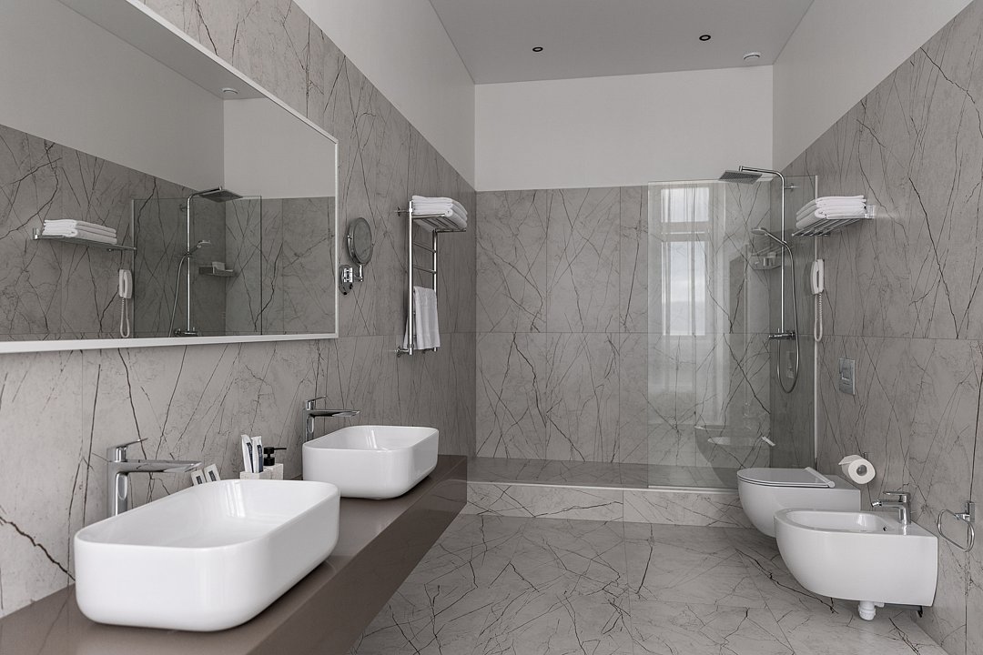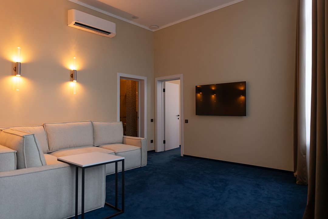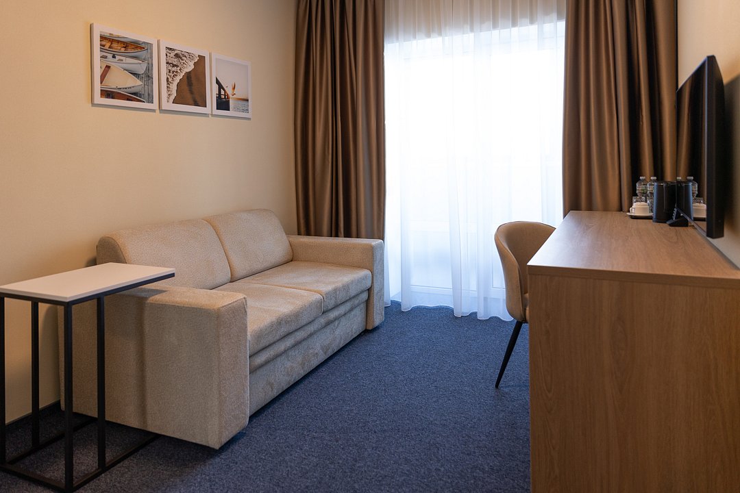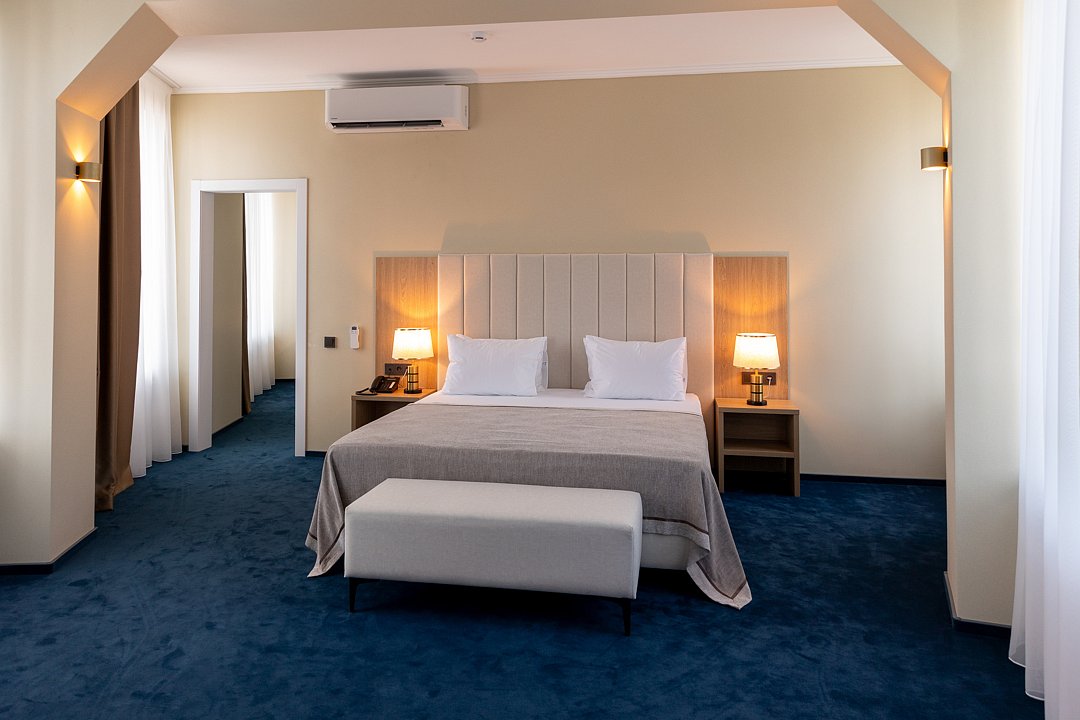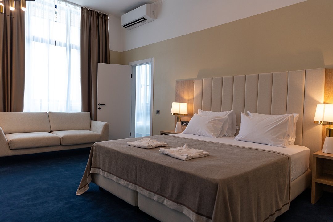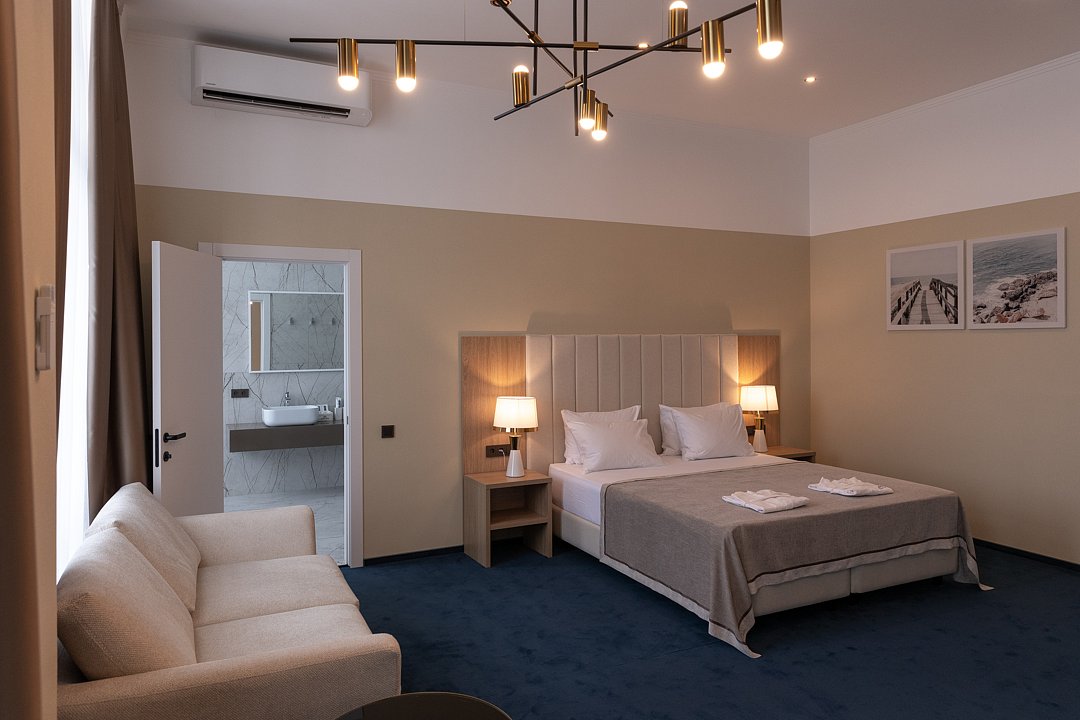 Номера предполагают комфорт первоклассного уровня, который достигает своего высочайшего значения в уютной спальне и роскошной отделке ванной. Основное спальное место — двуспальная кровать, дополнительное — диван.