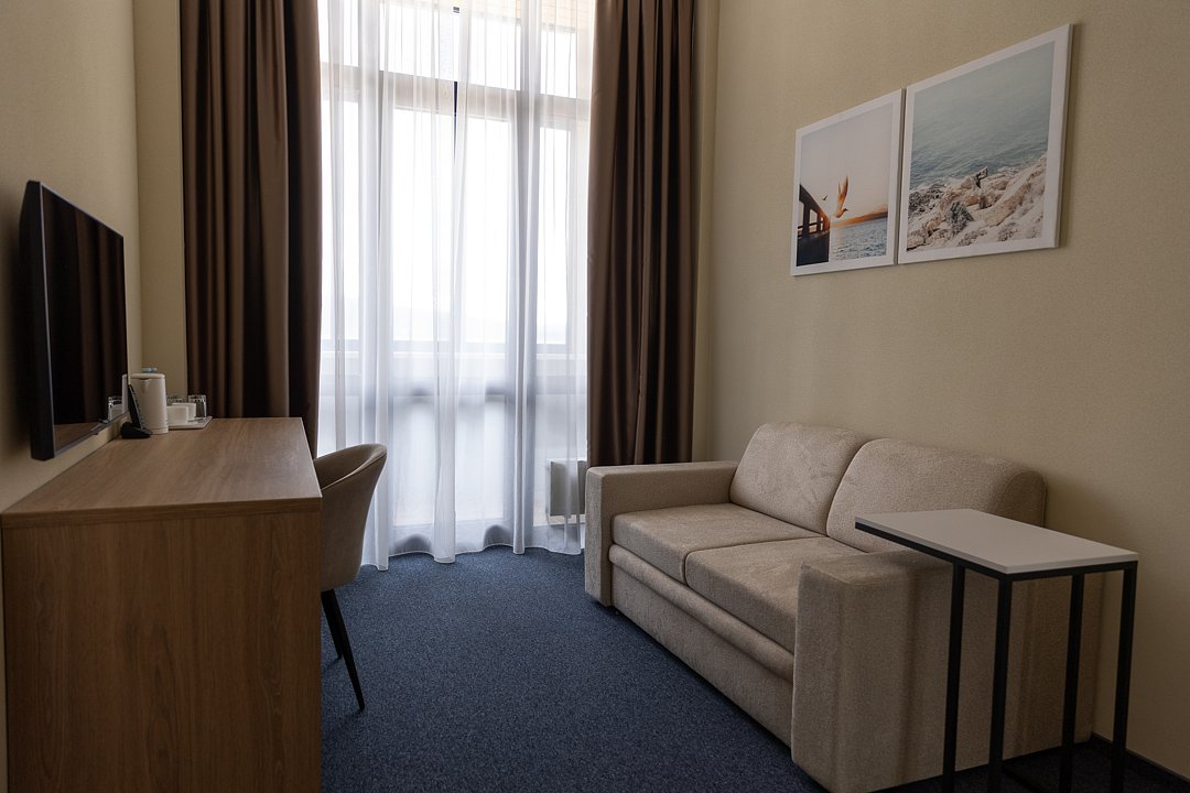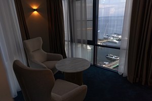 Великолепный вид дополняет уютное спальное пространство с мягкой зоной у панорамного окна, и становится центром притяжения, где можно расслабиться и насладиться моментом. В красивом и просторном номере есть все необходимое для комфортного отдыха: гостиная комната с раскладывающимся диваном и рабочий кабинет.