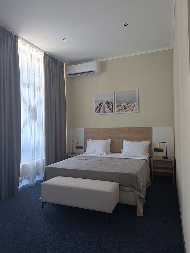 Предусмотрен для размещения до 2 персон, во всех номерах двуспальная кровать.