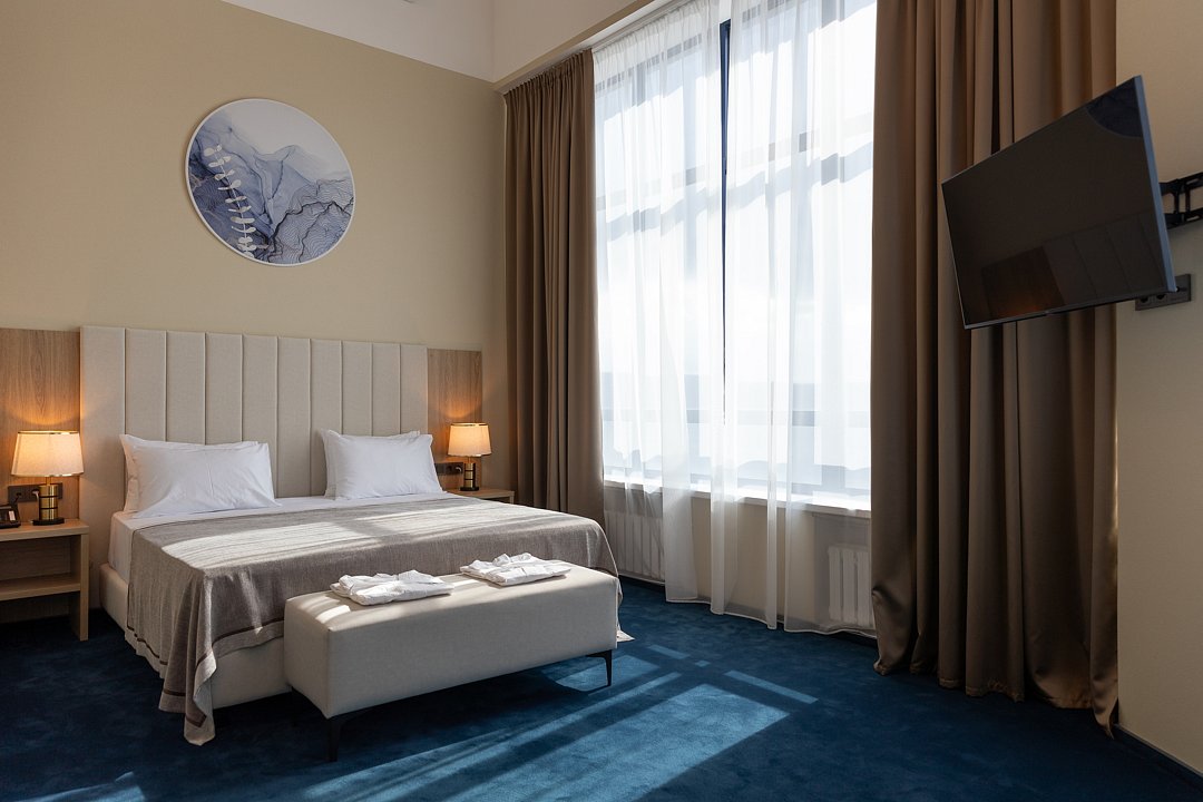 Оформленные в современном стиле с завораживающим видом на Волгу, эти номера предлагают гостям элегантную, спокойную атмосферу и исключительный комфорт. Прекрасный выбор как для деловых поездок, так и для отдыха.