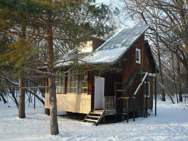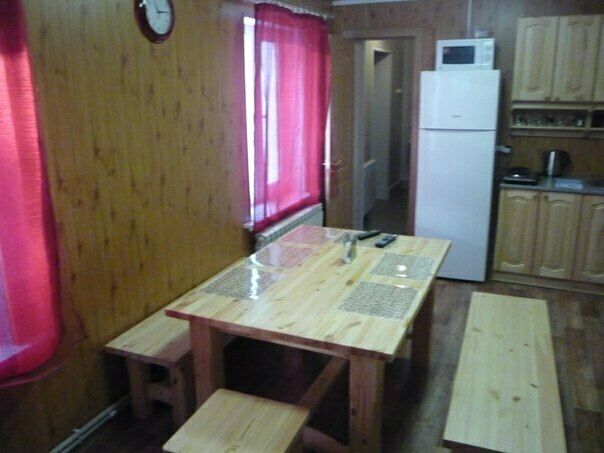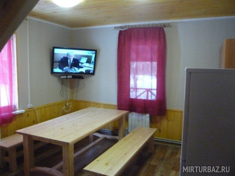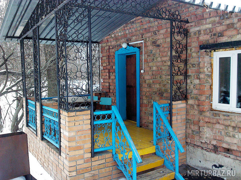 Это просторный и комфортабельный дом для большой компании. Снаружи здания находятся крыльцо и просторная веранда с большим столом и скамейками.