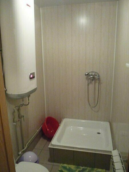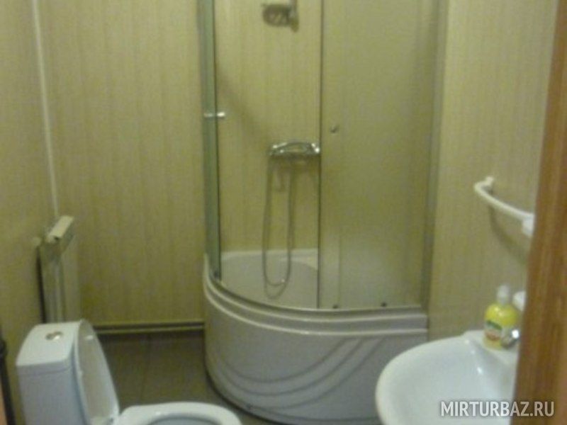 Оснащение: два санузла (туалет, умывальник, душевая кабина), электроплита, СВЧ-печь, мойка, холодильник, кухонный гарнитур, посуда, ТВ.
