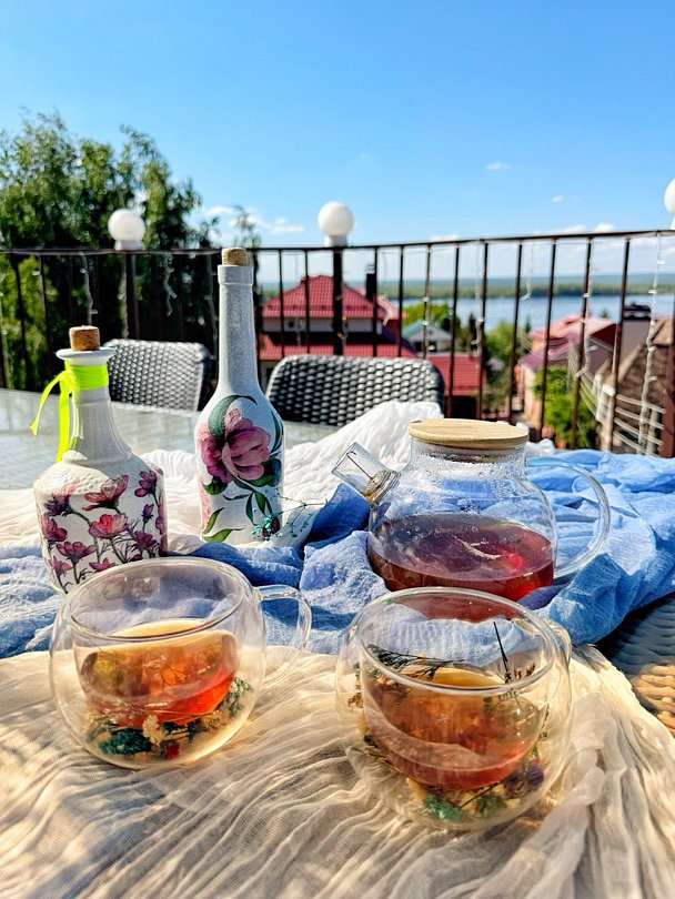 Для ценителей пространства и отдыха в компании Гостевой дом «Акватория» предлагает апартаменты на 4 этаже с выходом на террасу, откуда открывается живописный вид на реку Волга.